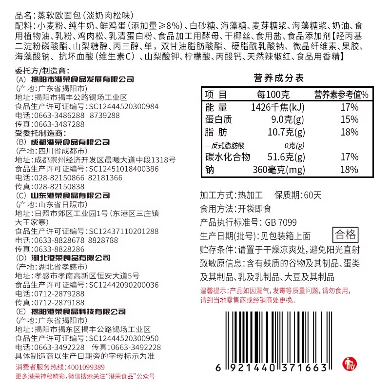 Hong Rong Steamed Bread with Pork Floss 450 g