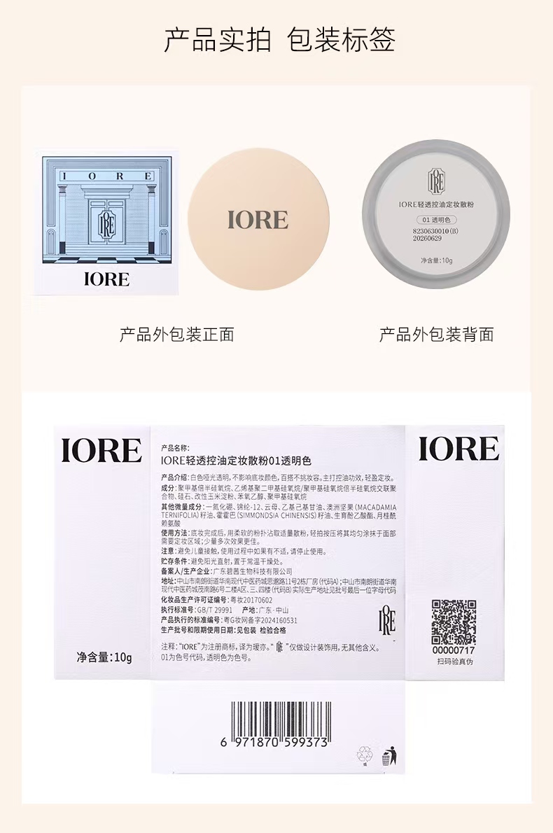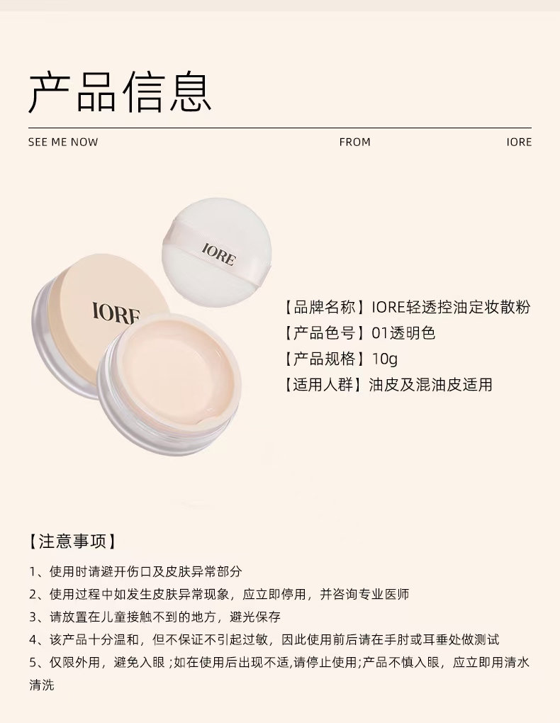 IORE清透控油定妝散粉01透明色 油皮混油皮適用 10 克