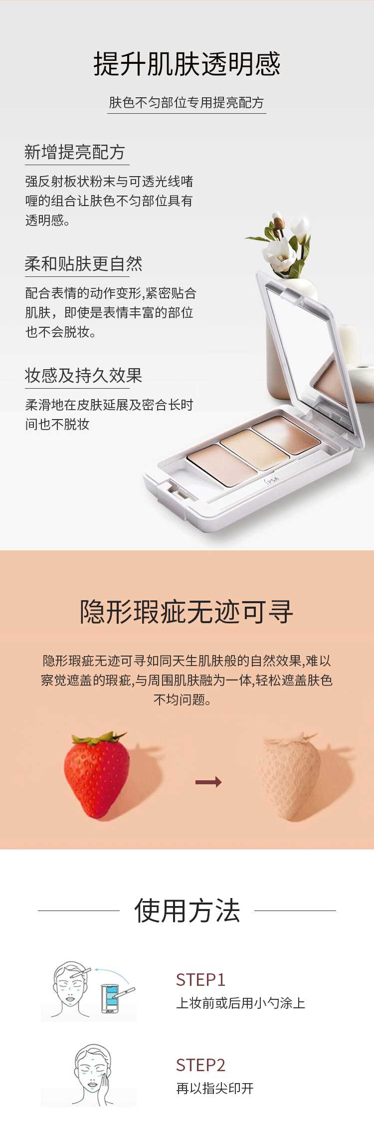 STEP1 Apply STEP2 with a small spoon before or after applying makeup, and then print it with your fingertips