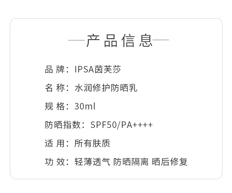 IPSA茵芙莎 水潤修護防曬乳 30ml SPF50+ PA++++ 1 份