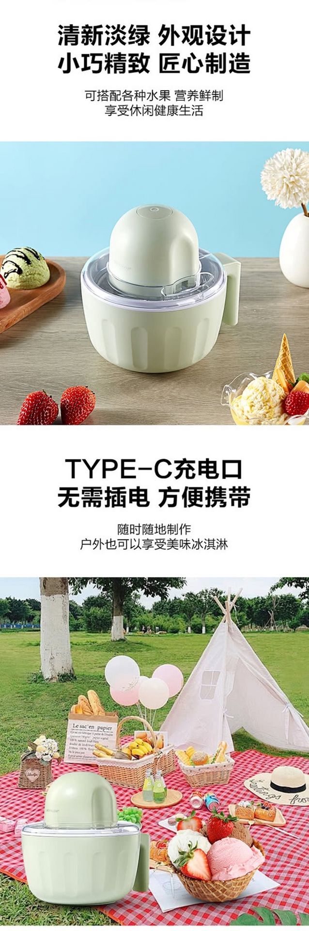 冰淇淋機 USB充電 500ml 迷你小巧20分鐘冰淇淋DIY 1 份