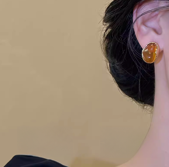 Irregular Amber Stud Earrings 1 カウント