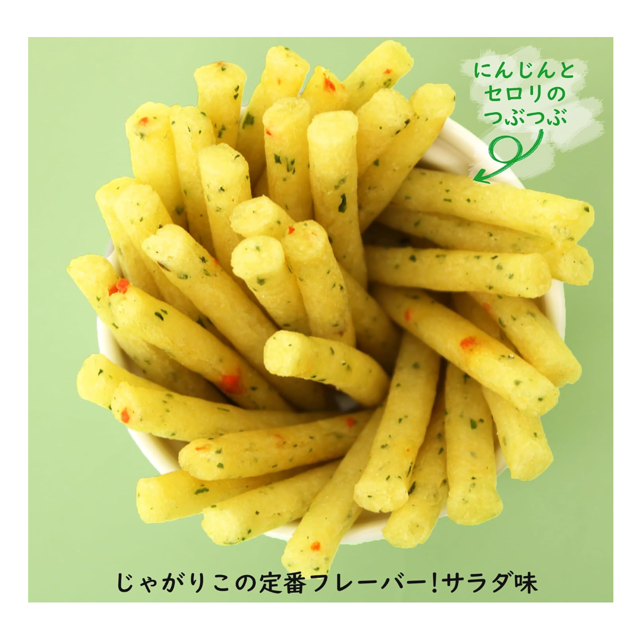 Thanks to our unique manufacturing method, you can enjoy a pleasant texture that is crispy at first and crispy afterwards.
