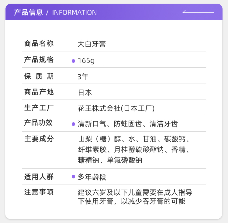 Japanese Kao Da Bai Toothpaste 165 g
