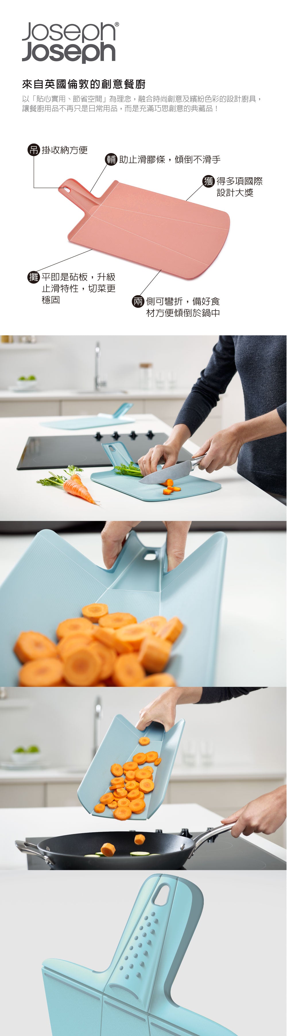 * This can be laid flat as a cutting board. Slightly squeezing the handle can form a dustpan shape, making it easier to pour ingredients.
