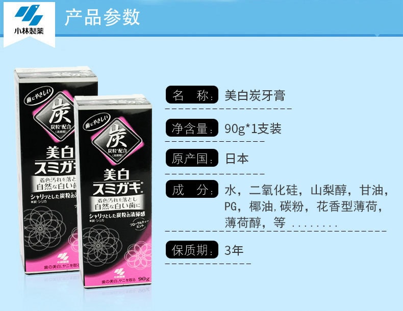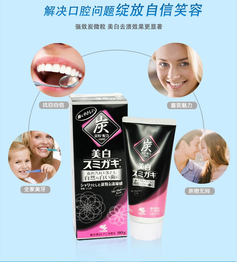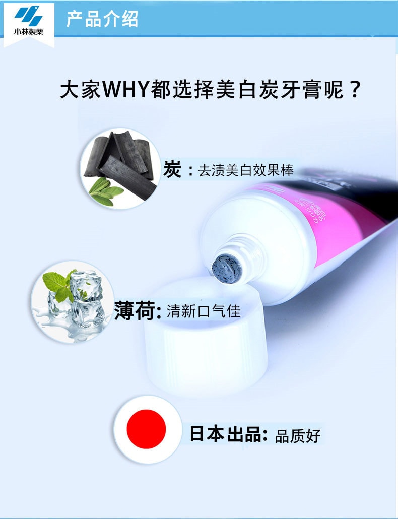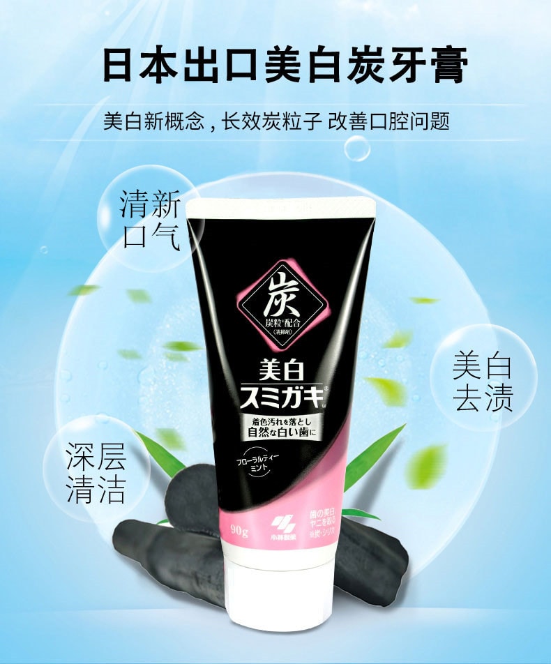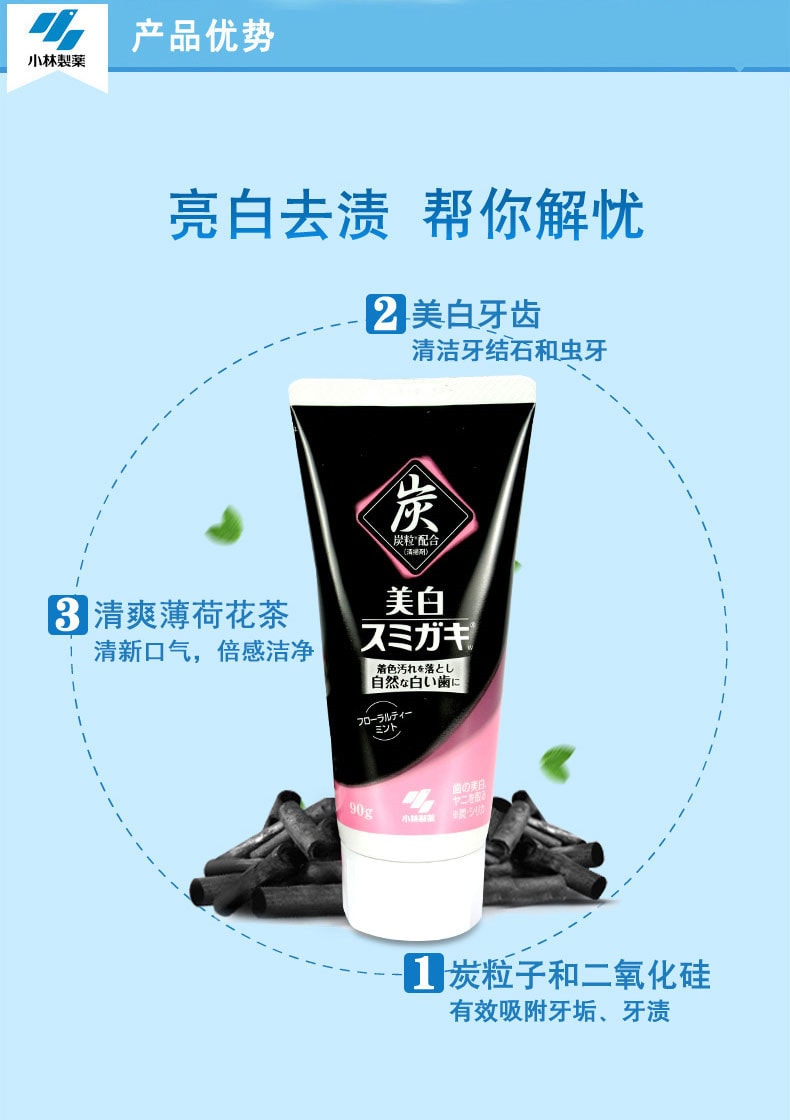 【日本直郵】小林製藥KOBAYASHI 深層美白清潔牙齒 去除口臭 美白炭牙膏 90 克