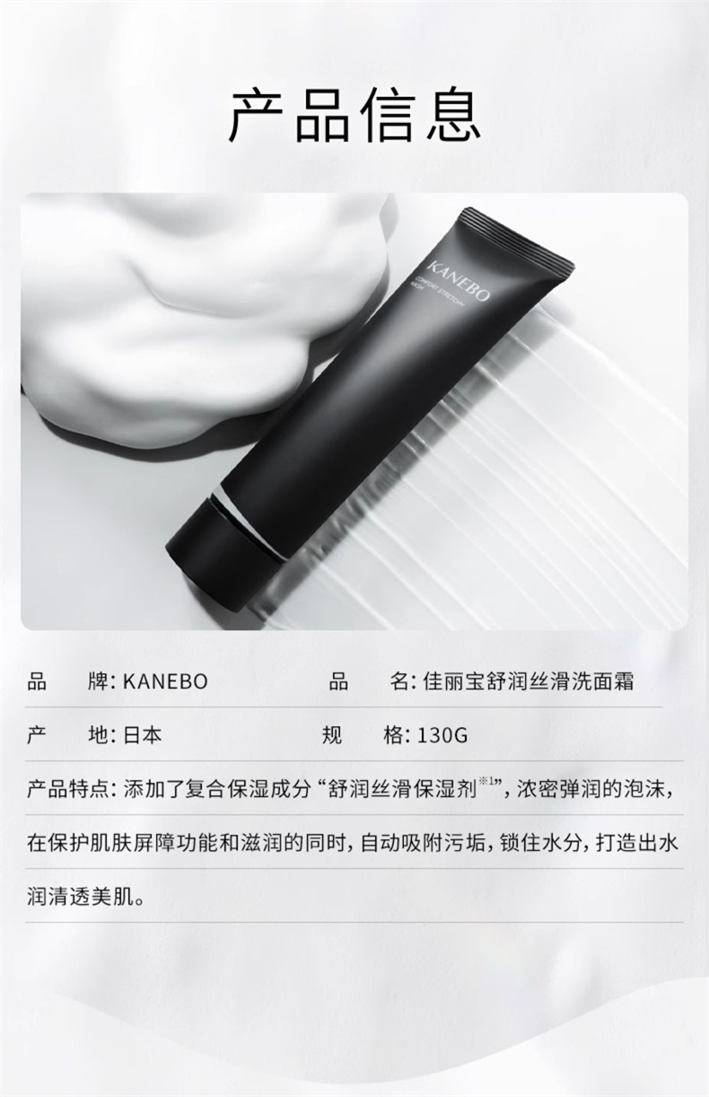 Kanebo嘉娜寶 黑管潔面 洗面奶 盈潤絲滑拉絲 130 克