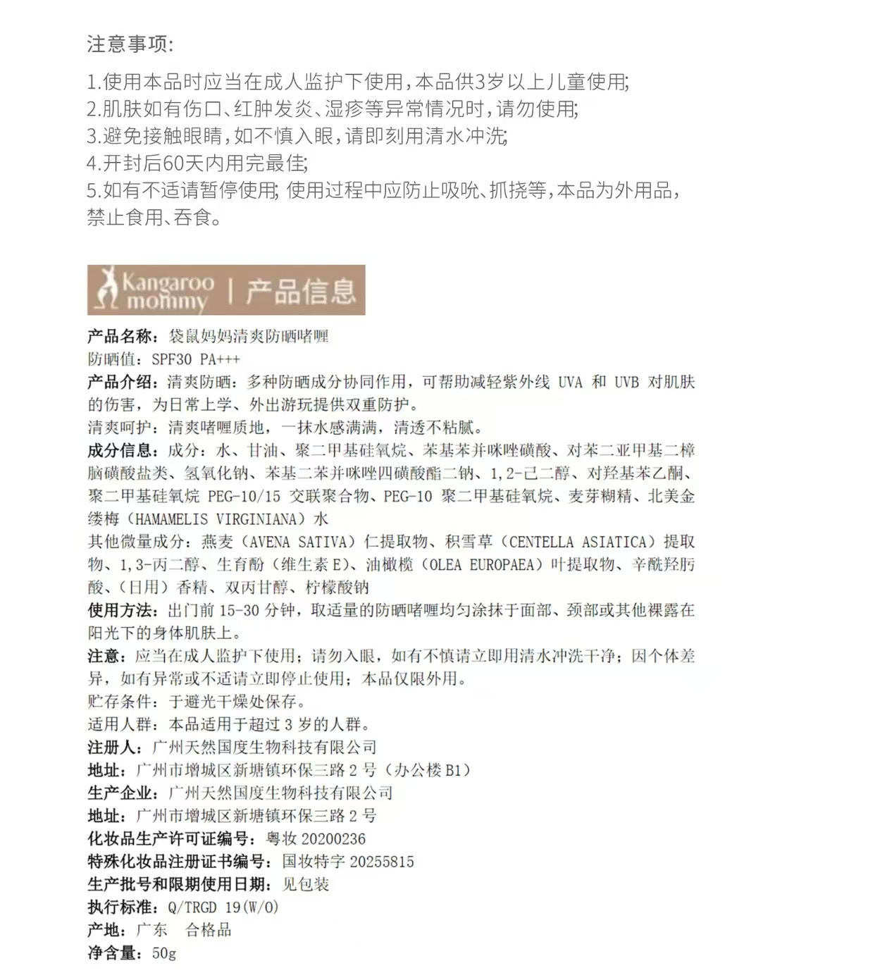 Kangaroo Mama Refreshing Sunscreen Gel 50 g