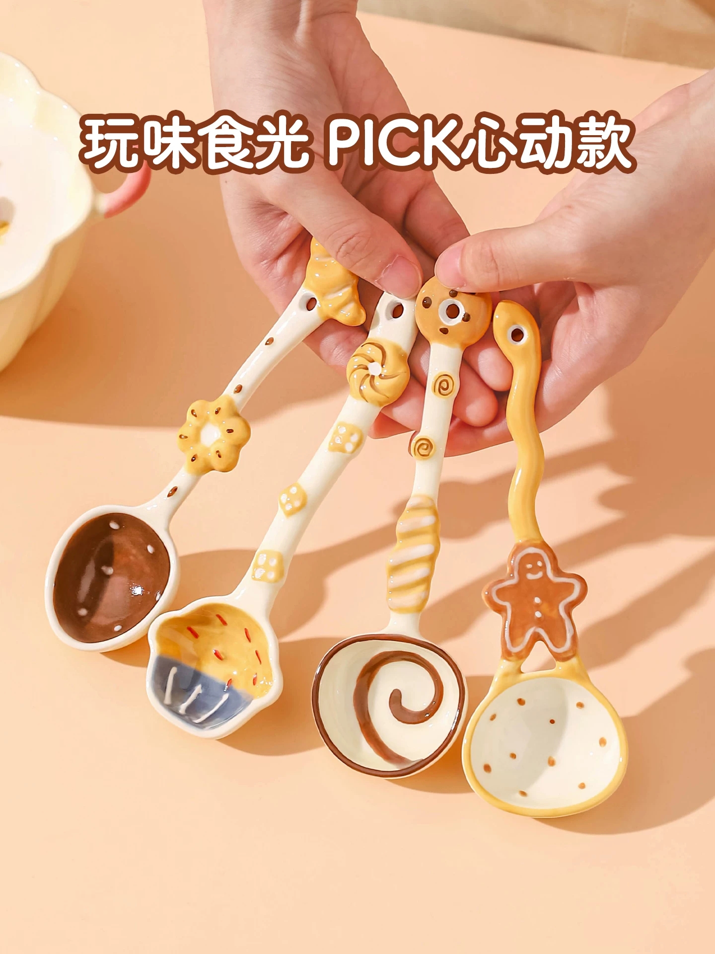 川島屋可愛陶瓷勺子 稀奇古怪的小湯匙調羹 4 份