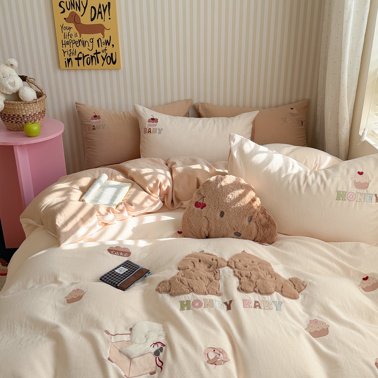 讓可愛的小動物,陪你進入甜甜的夢鄉。選用親膚透氣面料,質地輕盈柔軟,守護每一個天真爛漫的夜晚。在柔軟與童趣中,安心入睡,甜蜜醒來。
