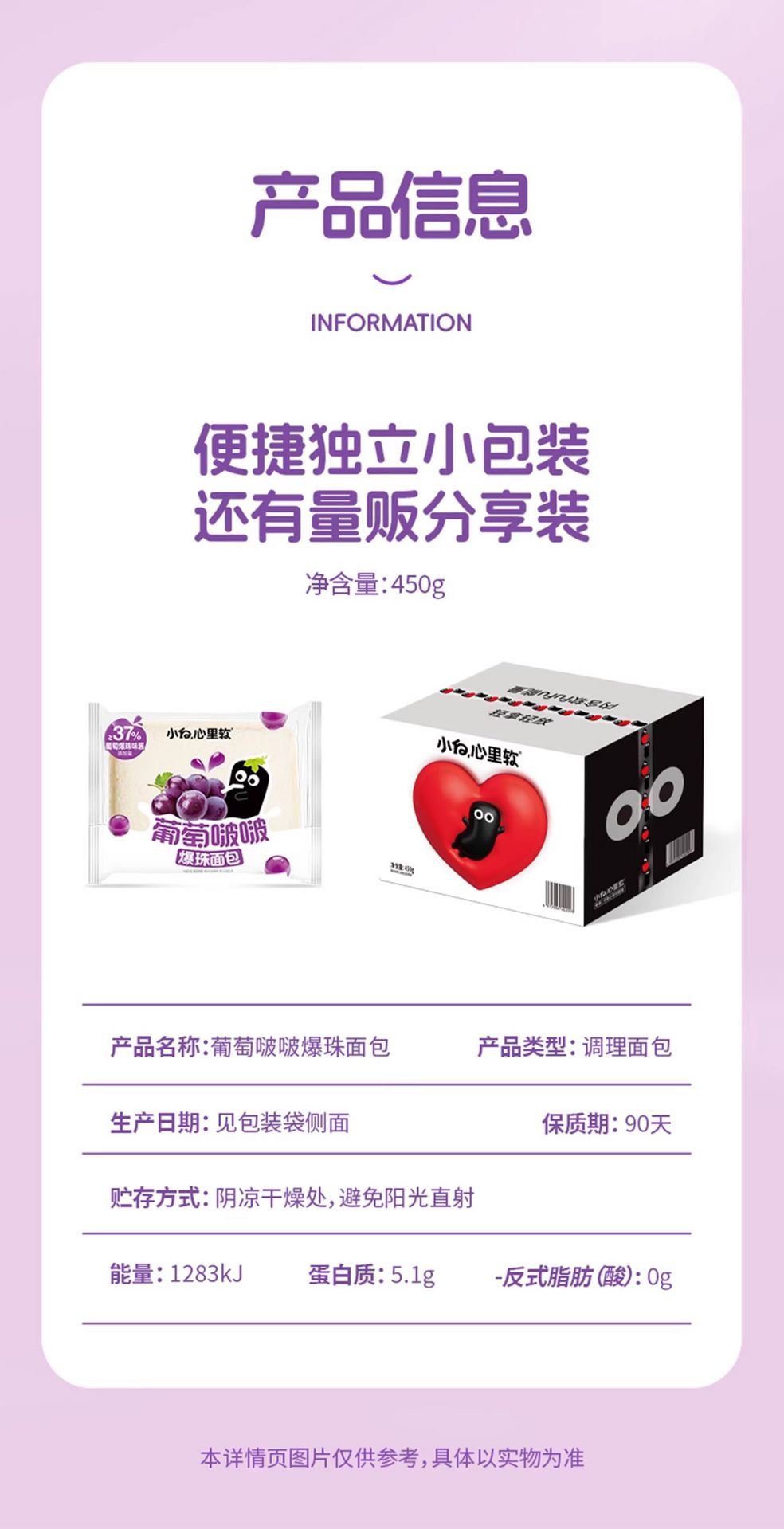 小白心裏軟葡萄啵啵麪包學生代餐夾心早餐蛋糕零食 450 克