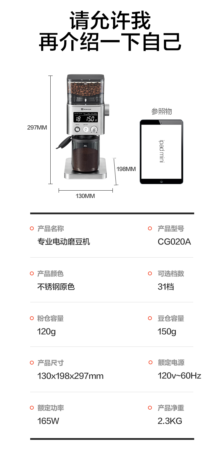 磨客咖啡磨豆機CG020A 31檔磨粉 兼容多種咖 1 份