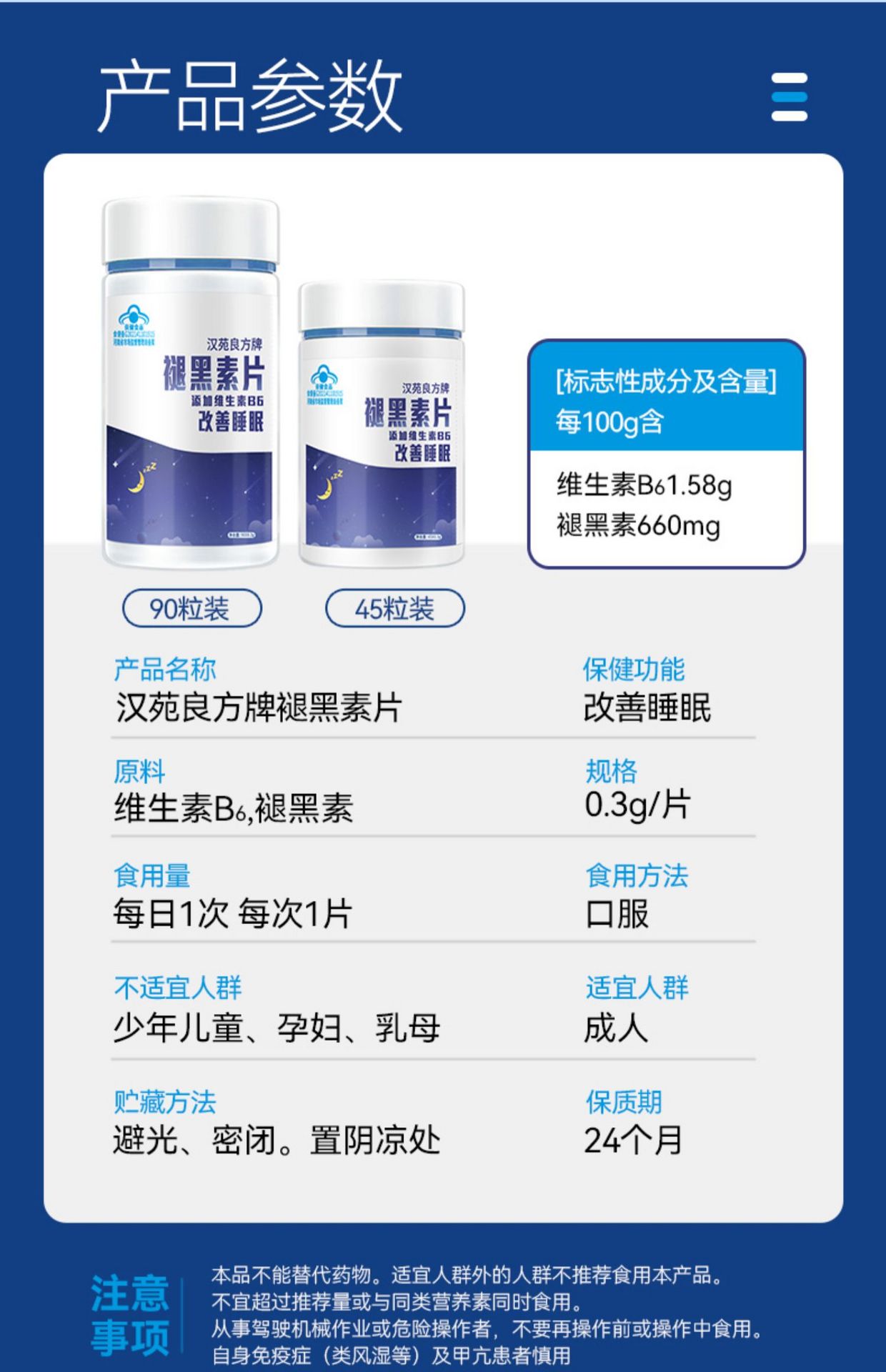 Melatonin tablets (45 tablets per bottle. 1 bottle
