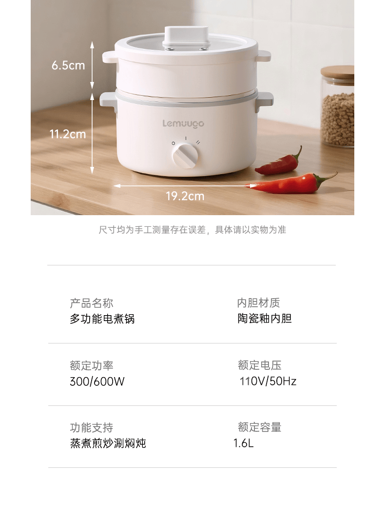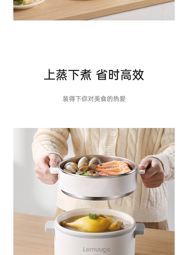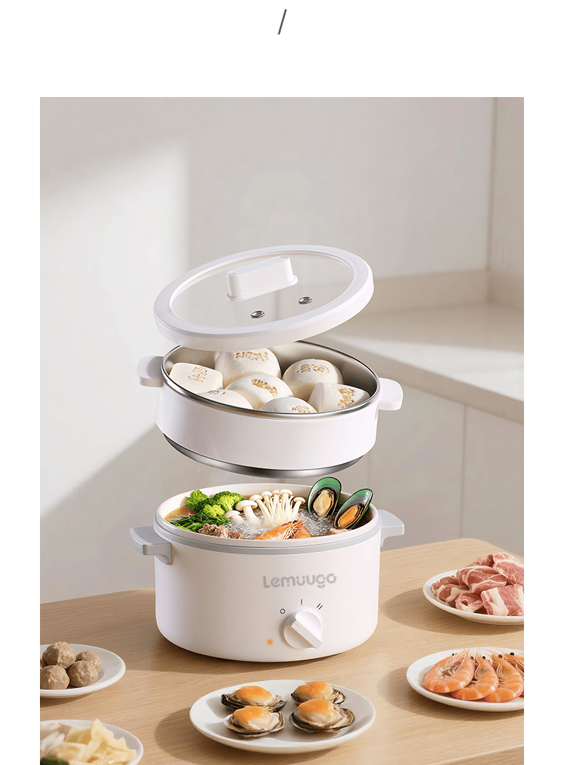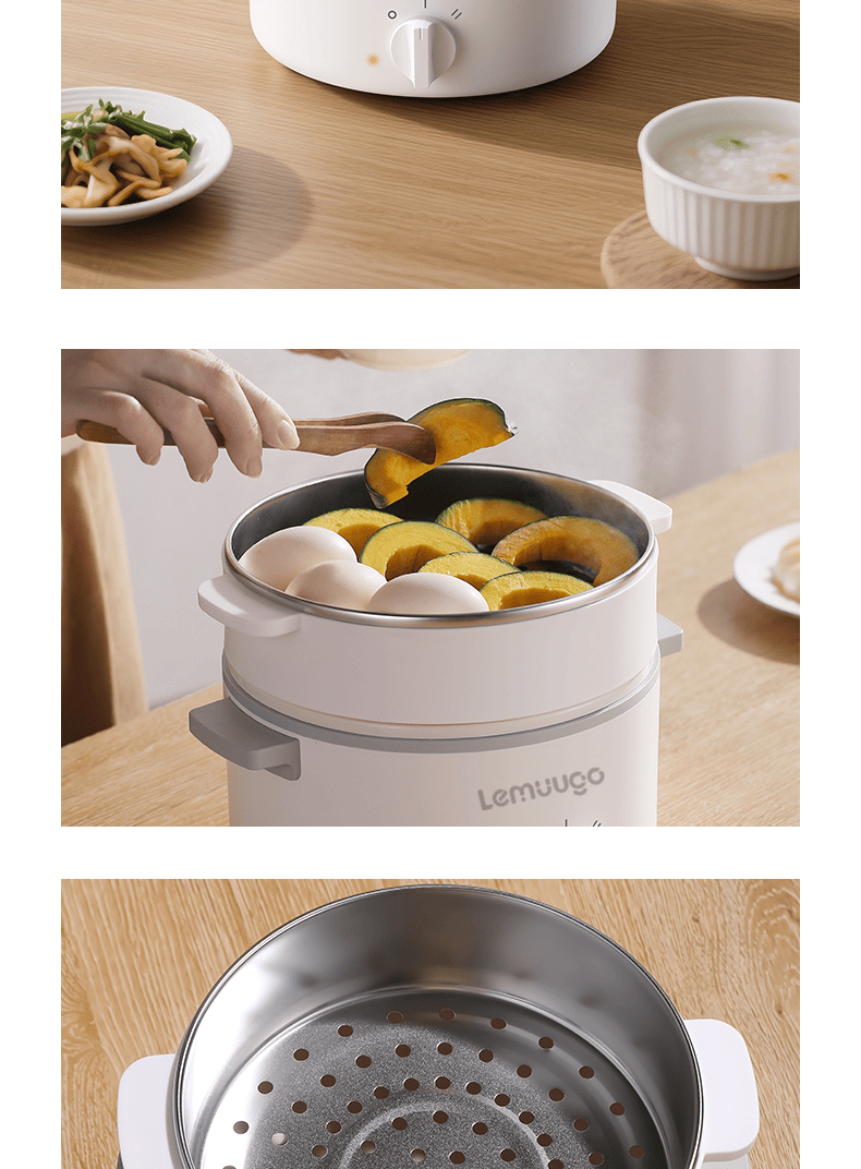 電蒸鍋早餐機煮蛋器小火鍋陶瓷釉內膽304不鏽鋼蒸籠 1 个