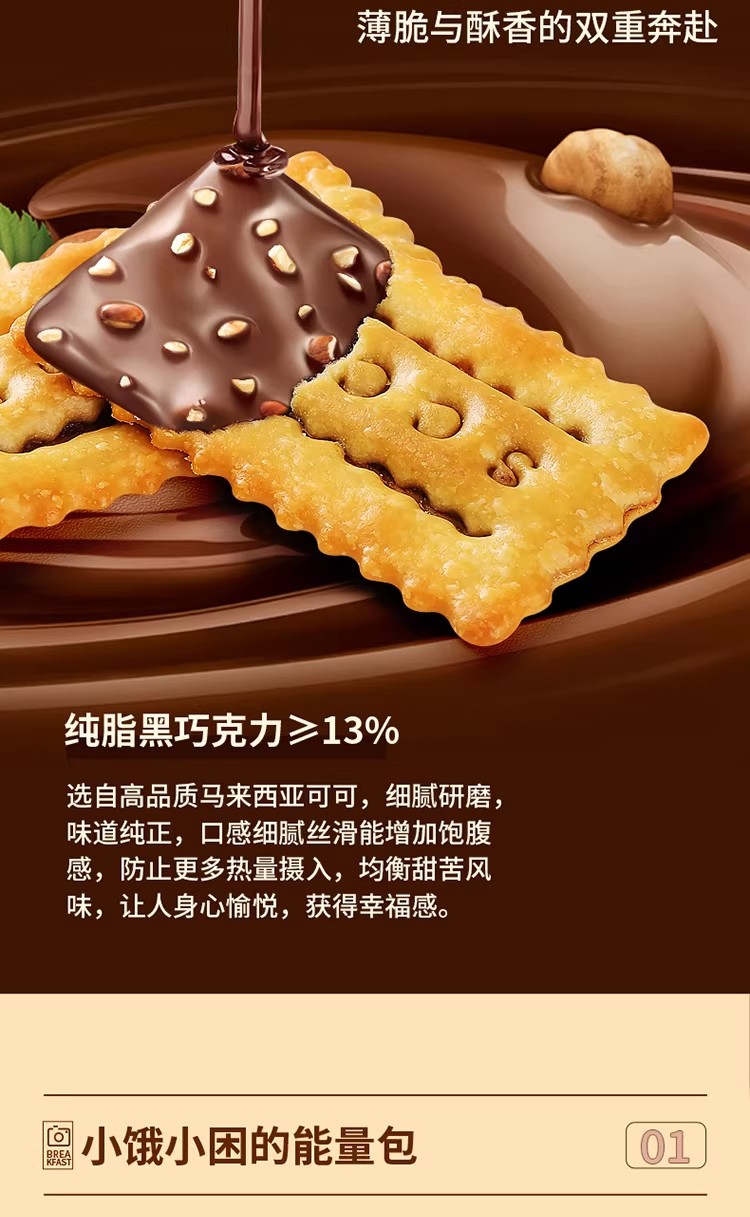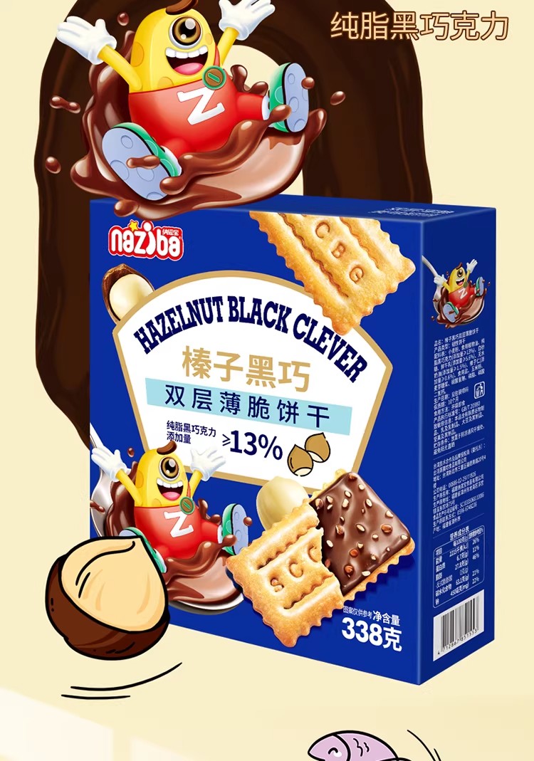 纳滋宝 榛子黑巧双层薄脆夹心饼干办公室解馋零食点心 338 克