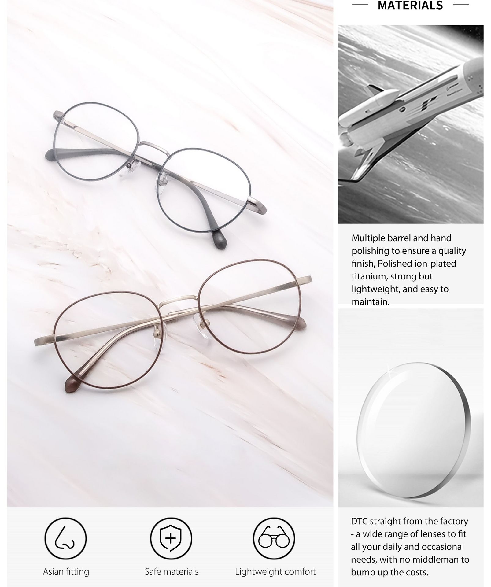 Custom glasses: Add lenses, choose a frame, then send your prescription for tailored creation.