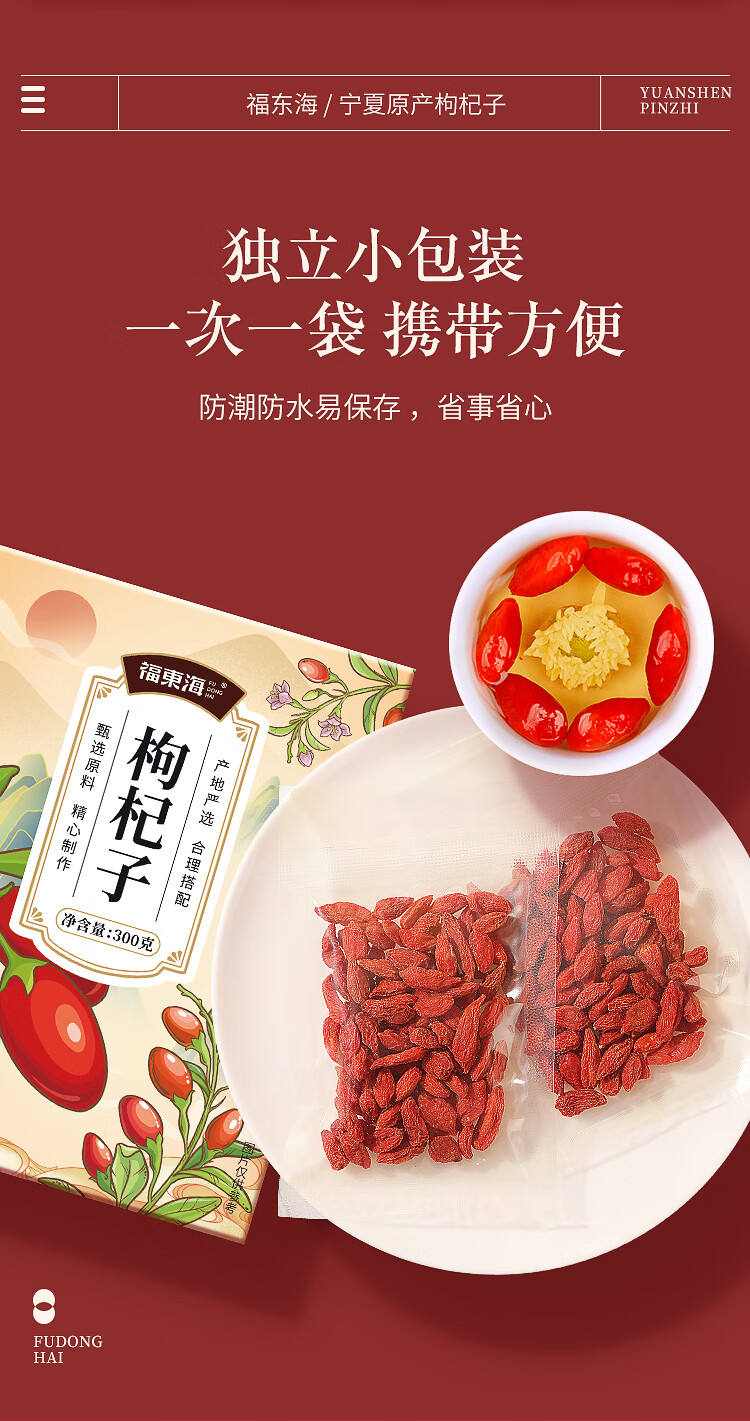 福東海 寧夏紅枸杞 免洗紅枸杞子茶苟杞紅枸杞獨立小袋搭龍眼肉當歸泡茶湯料 滋補品送禮 300 克