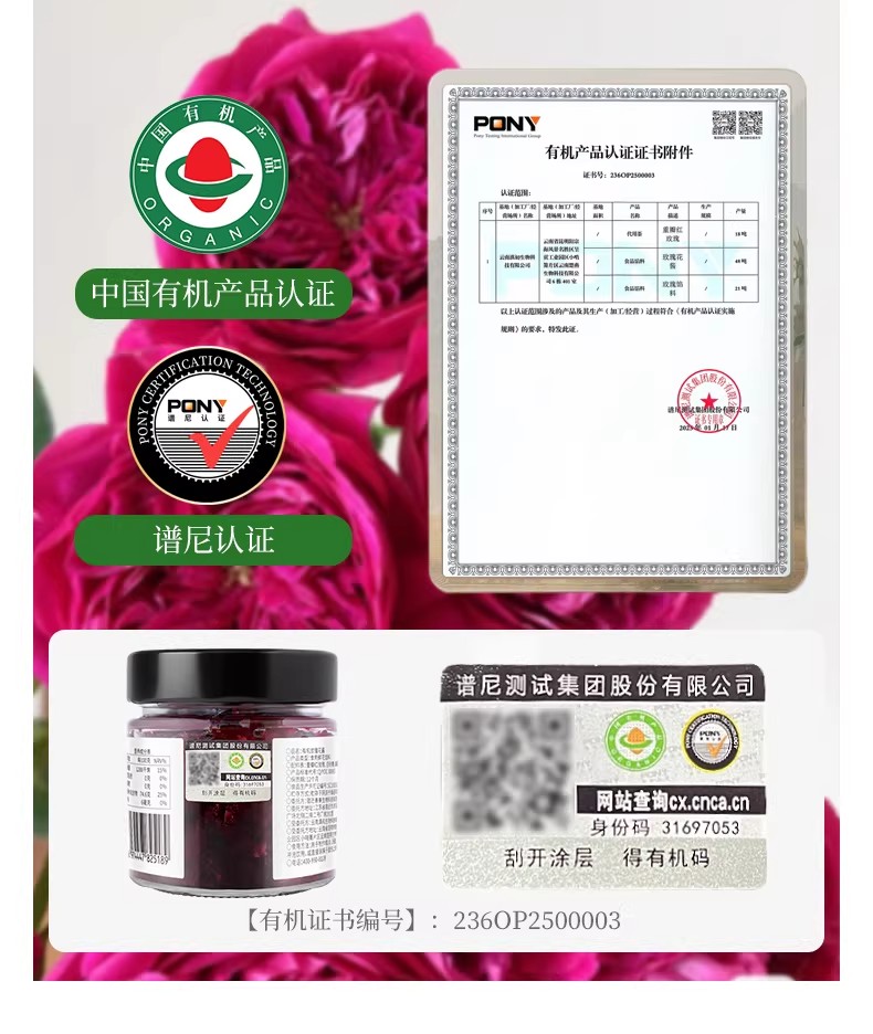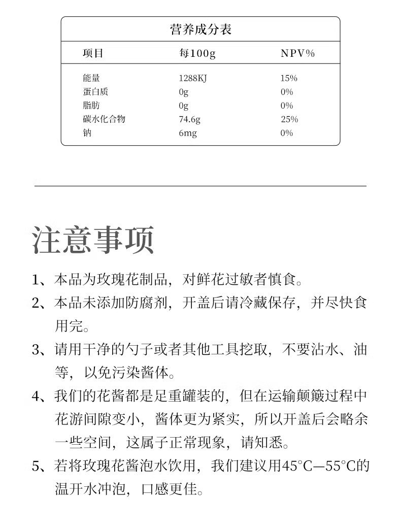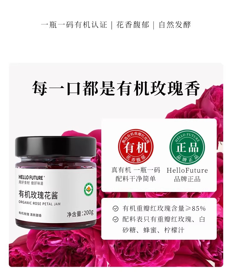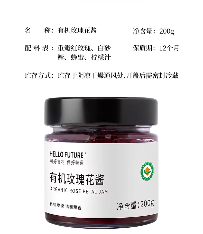 有机玫瑰花酱200g