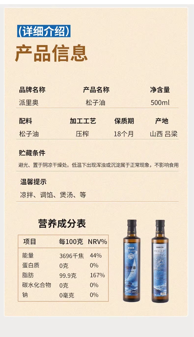 Palio Cold Pressed Pine Nut Oil 500 ml