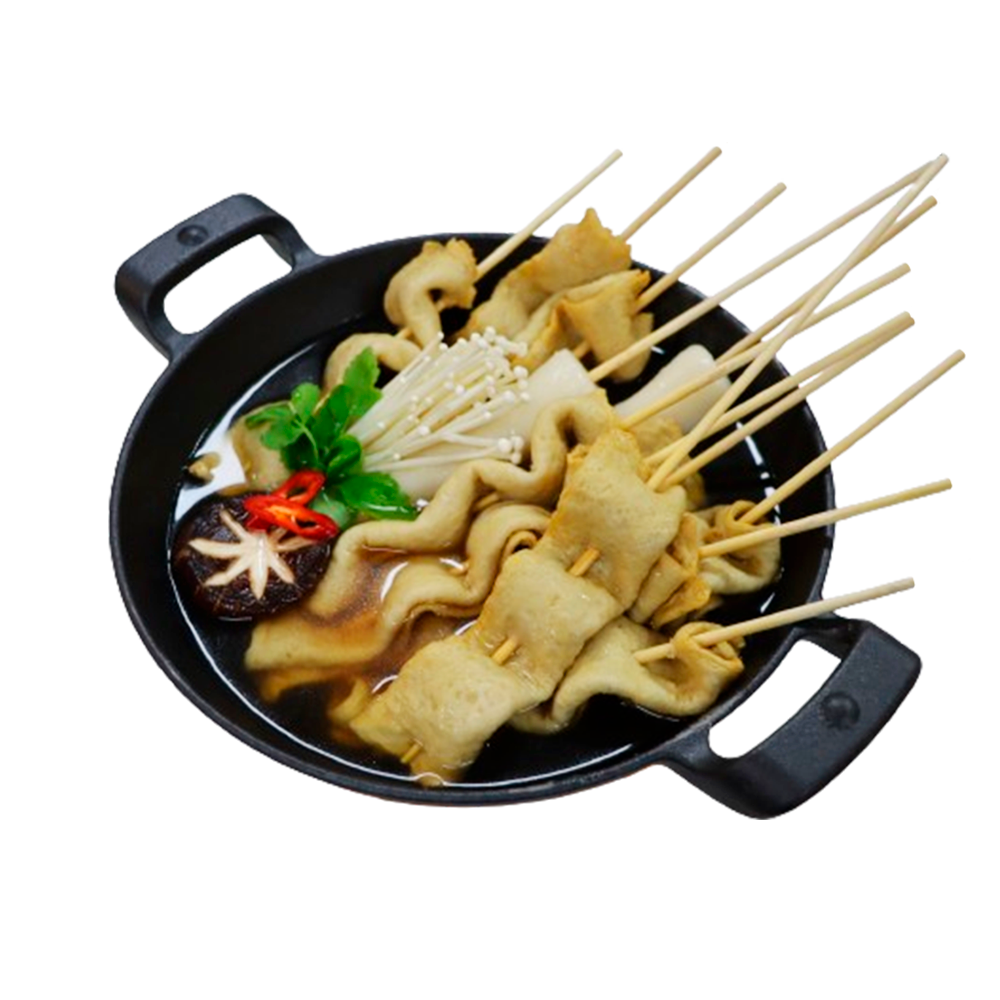 It comes with skewers and broth sauce, allowing you to easily make fish cake soup.