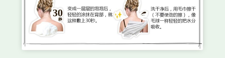 Làm ướt xà phòng và tạo bọt. Áp dụng cho cơ thể và lưng của bạn. Rửa sạch bằng nước.