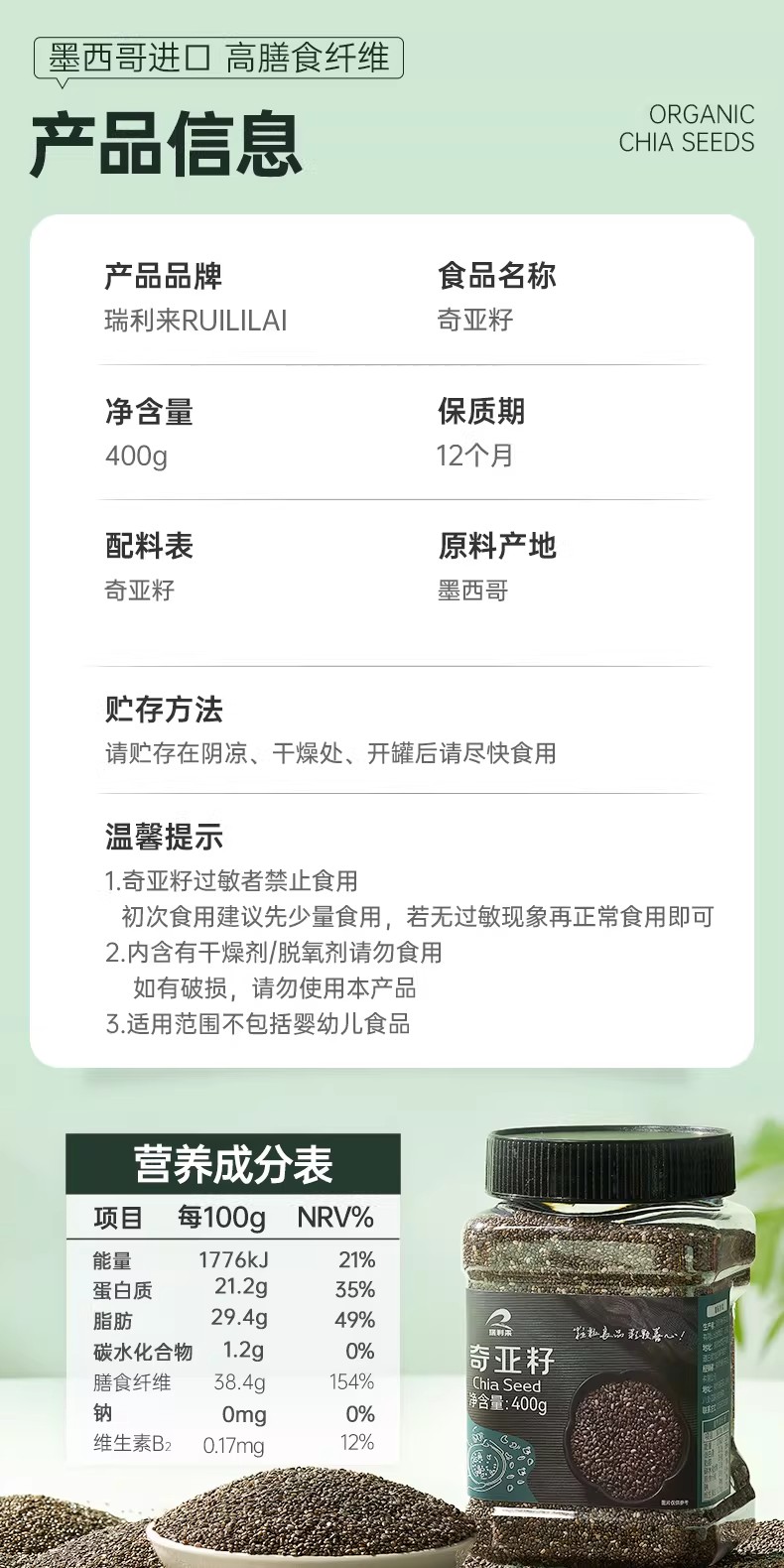 Rayleigh No-Rinse Chia Seeds 400 g