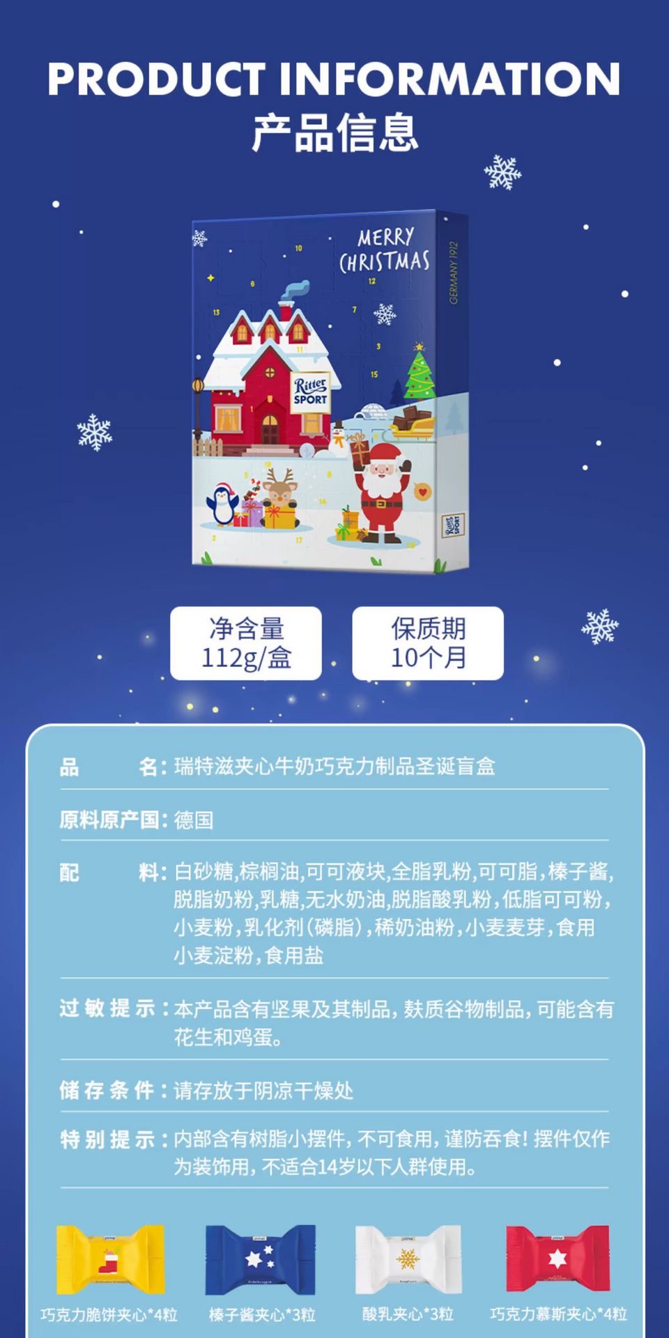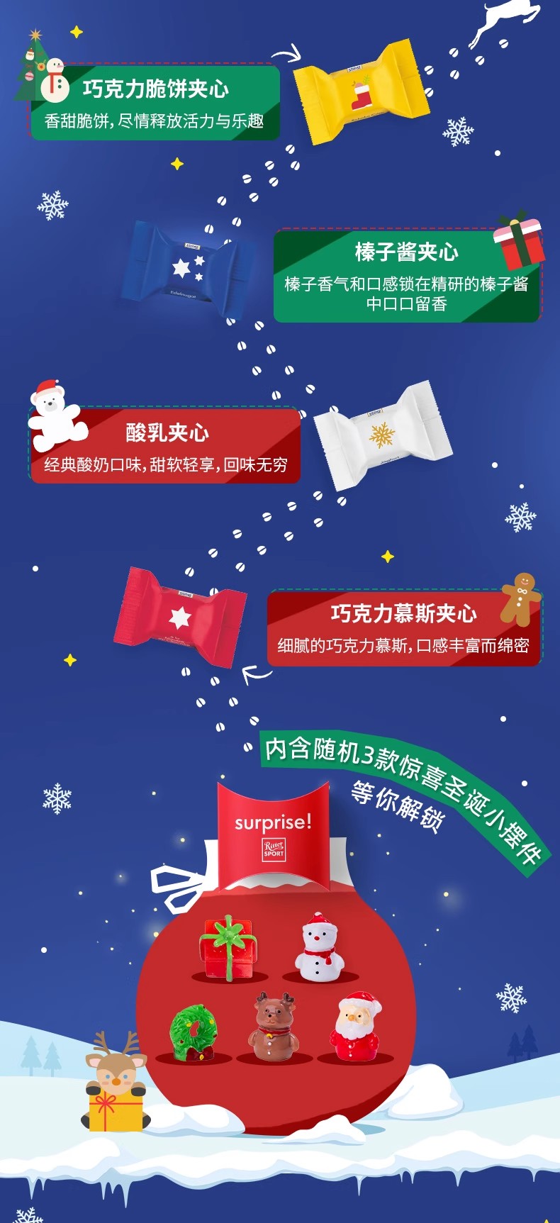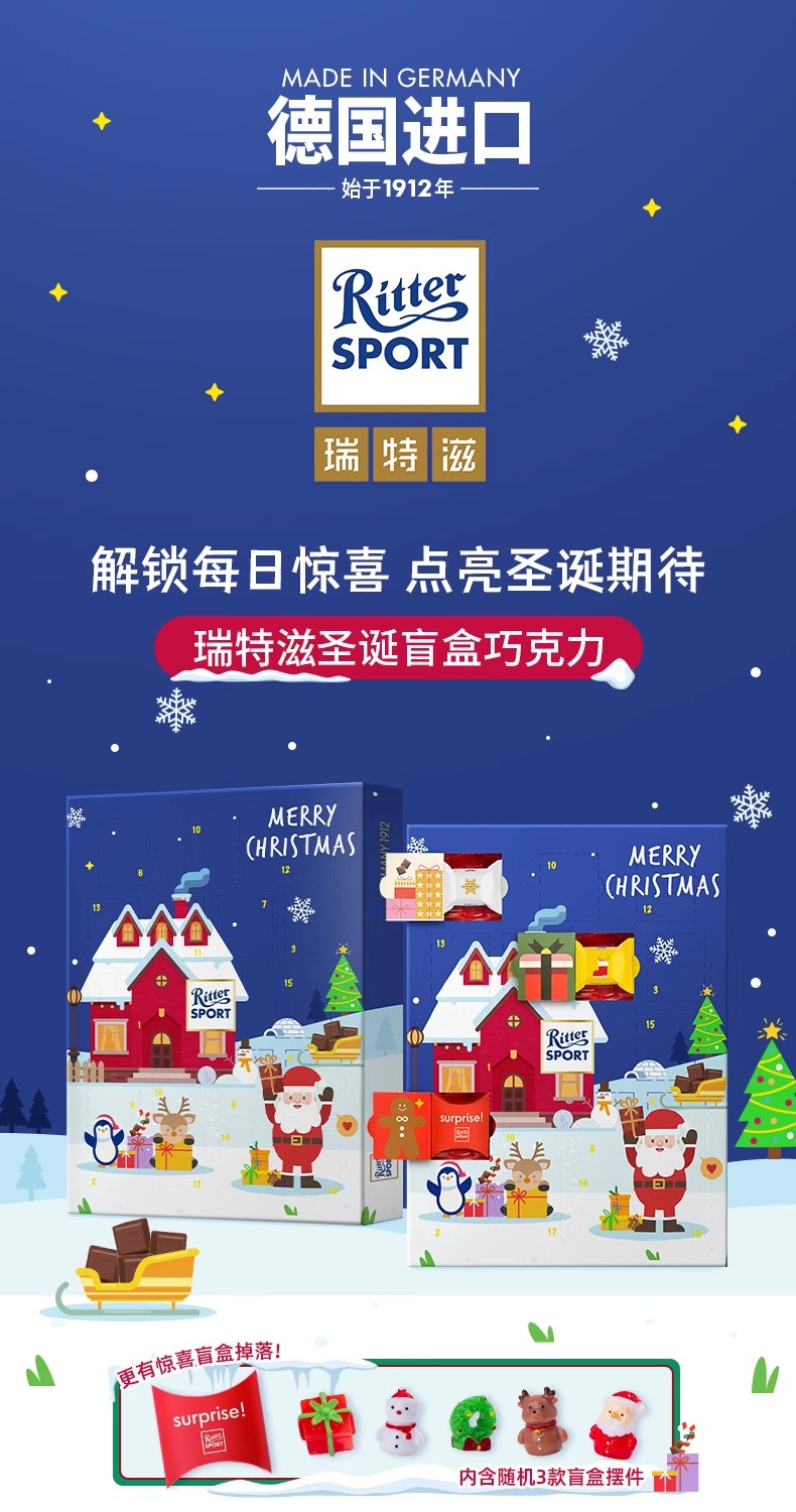 瑞特滋聖誕禮物德國進口夾心巧克力盲盒聖誕玩具 1 盒