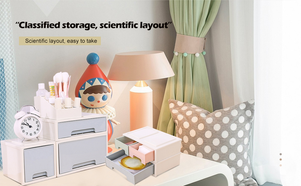 [Free Combination and Color Sorting:] Drawer Units of the same width can be stacked at will. The drawer organizer units can be continuously expanded upwards. Combine it into what you like according to personal needs. Also, it can also be disassembled and placed in a variety of ways as you like. The color of each drawer is made of fashionable macarons.The colors are composed of warm and lovely blue, pink and green. It can be used to sort the items you place.