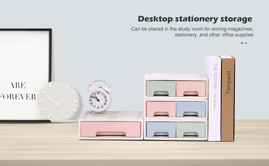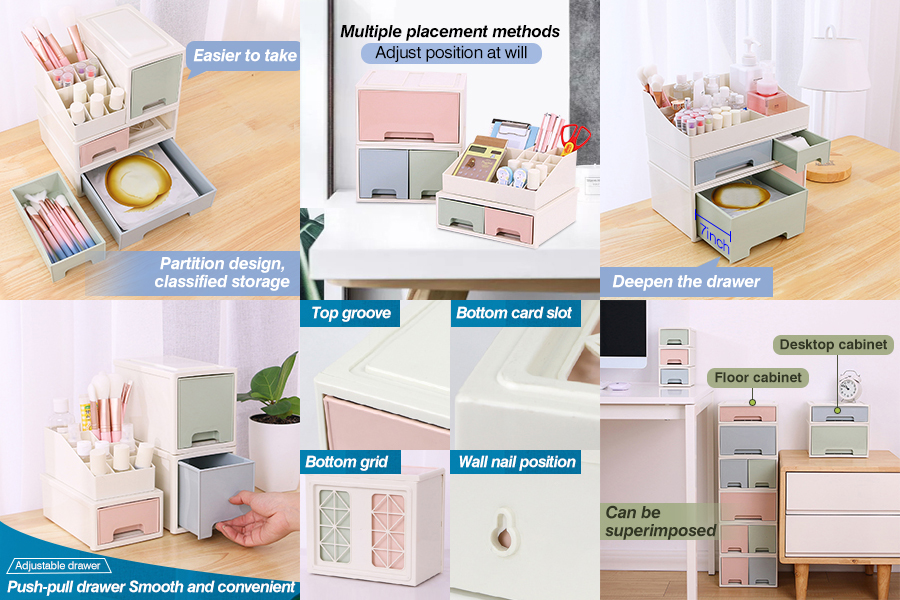 [Multiple Placement Methods:] You can buy multiple desktop storage boxes to stack them, which can be placed on the floor, and can be stacked very high. You can directly place them on the desktop individually. You can also split the combination to put the drawer units separate them from the upper shelf and place them where you like to store items. It can even be wall-mounted, there is a hole on the back, which can be wall-mounted by gently piercing it with a wooden stick.