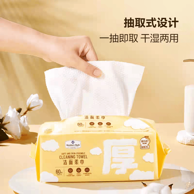 山姆洗臉巾潔面柔巾一次性抽取式乾溼兩用720抽 1 包