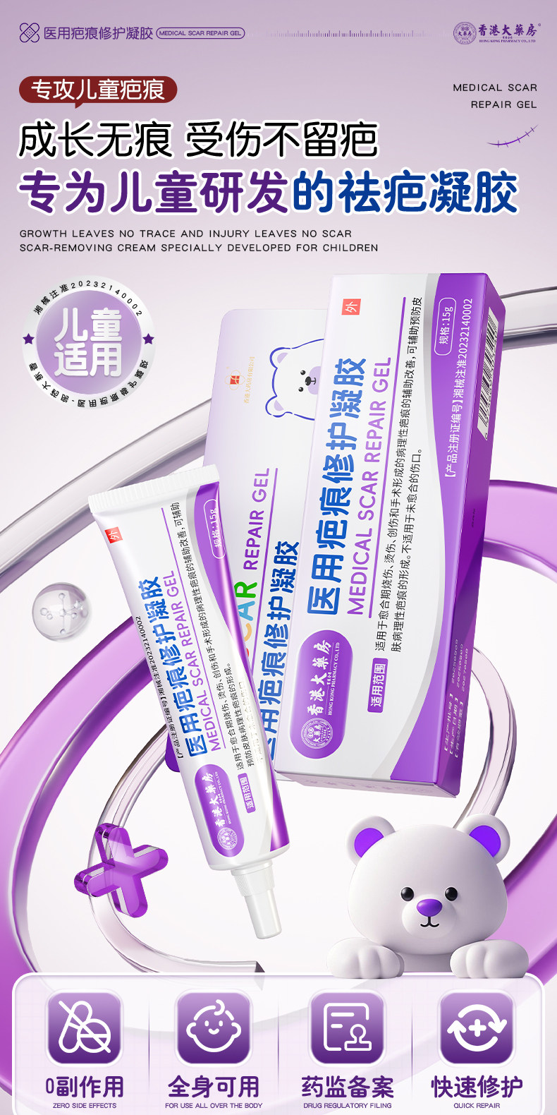 【香港大藥房】兒童醫用祛疤痕凝膠 1支 15 克