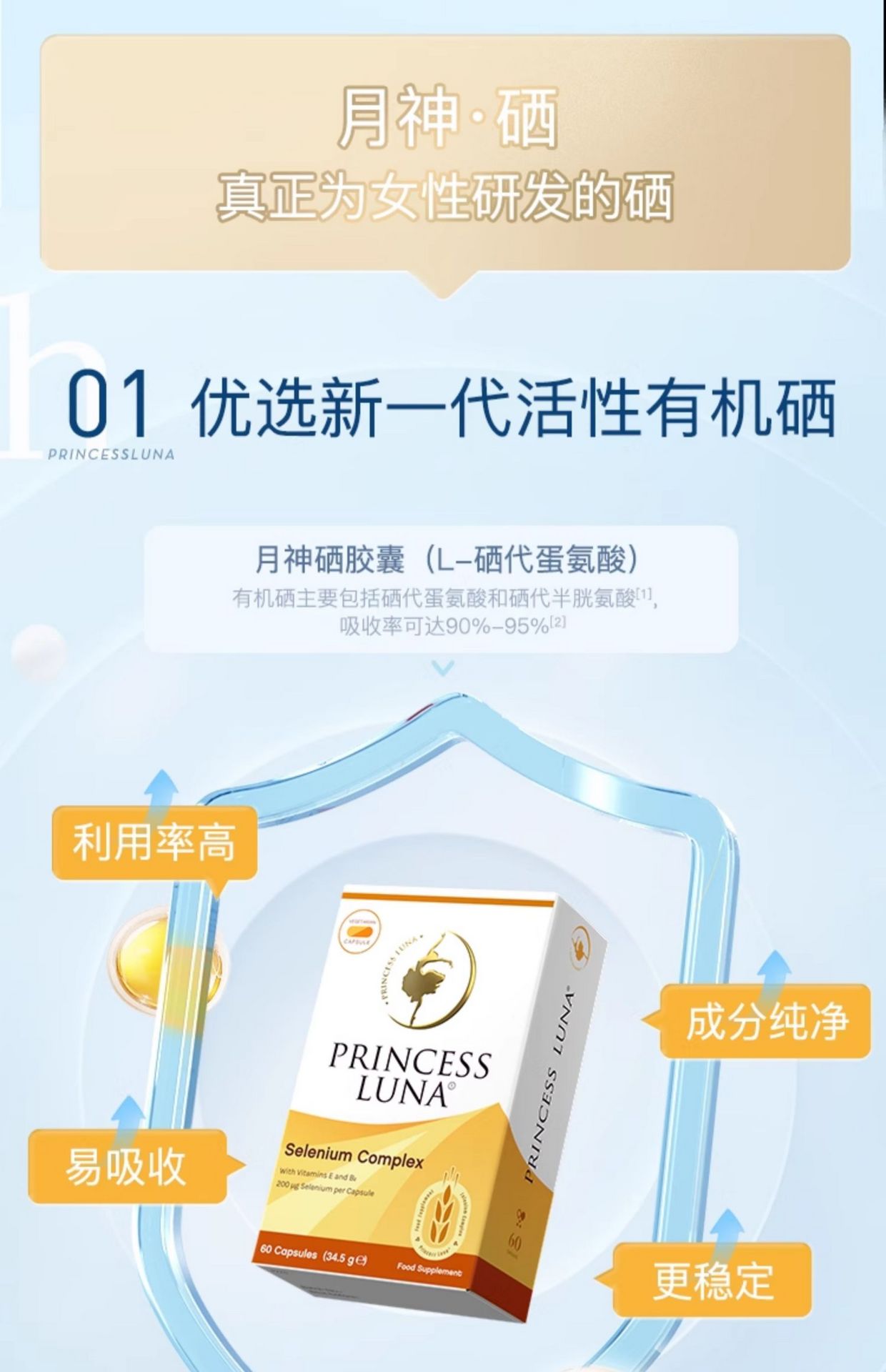 月神硒硒片60粒/盒補硒有機硒女性免疫力膠囊 1 盒