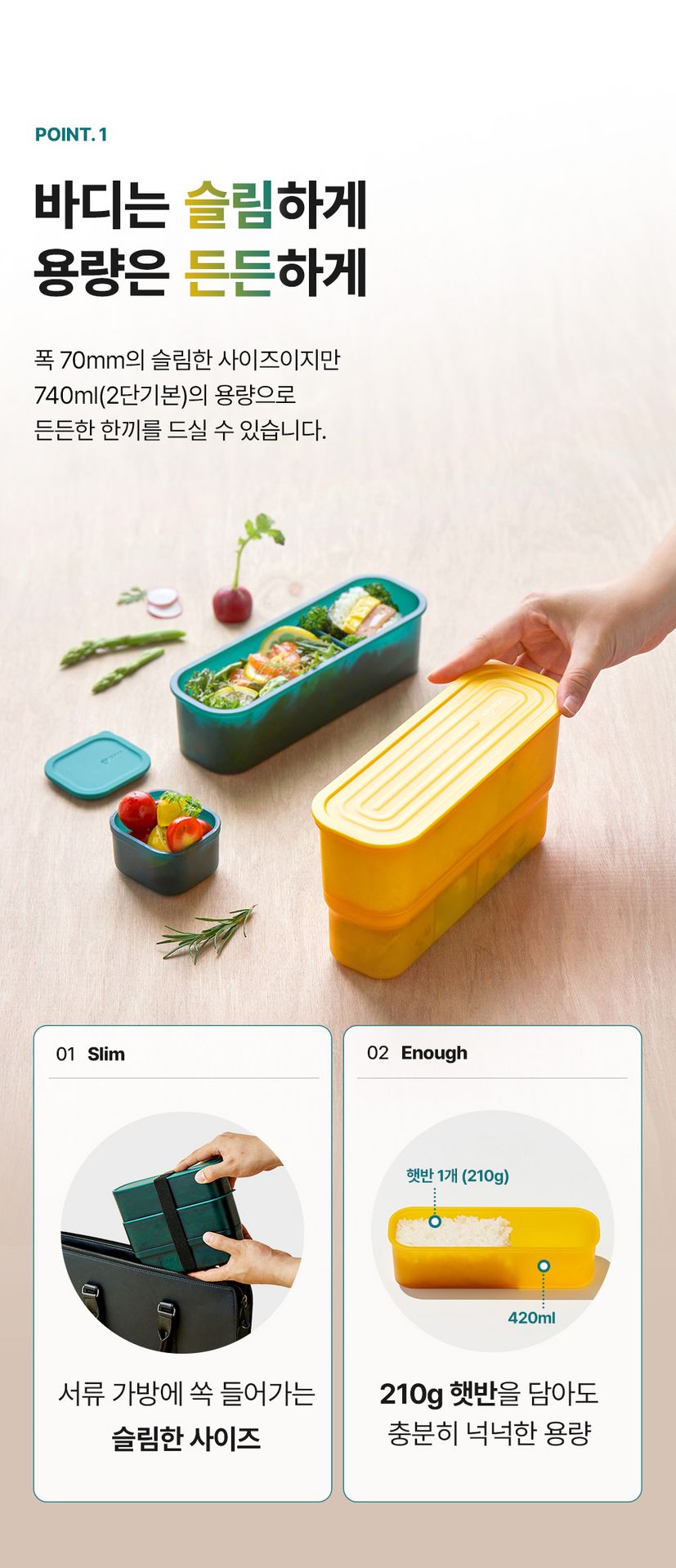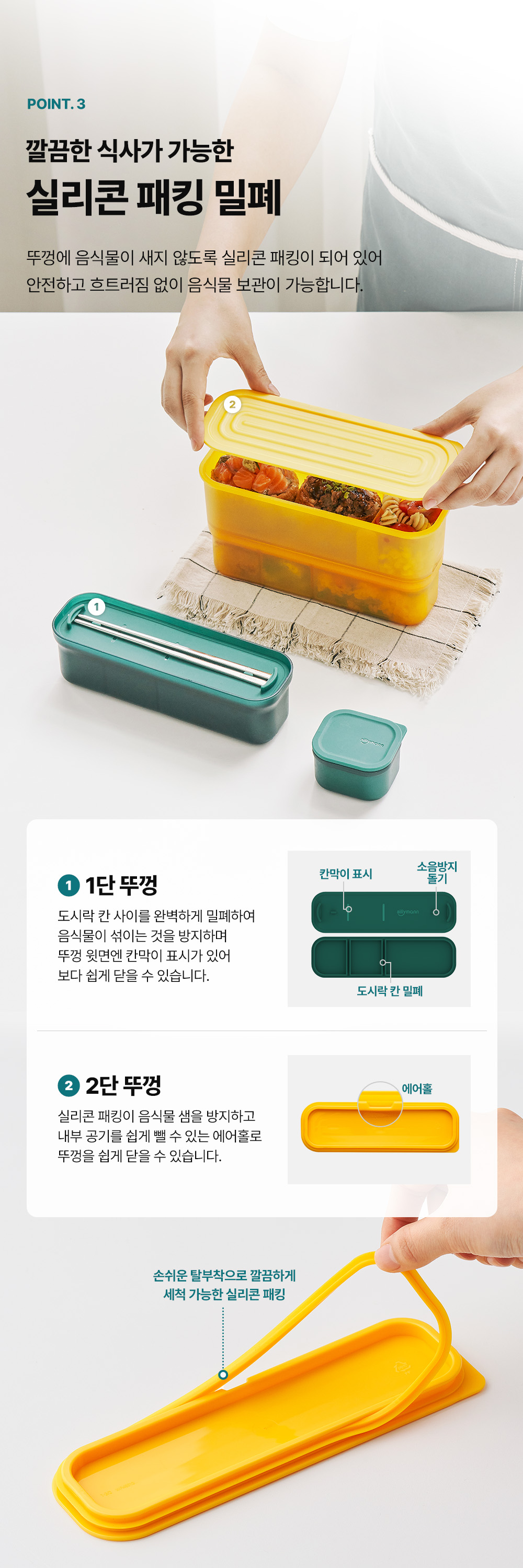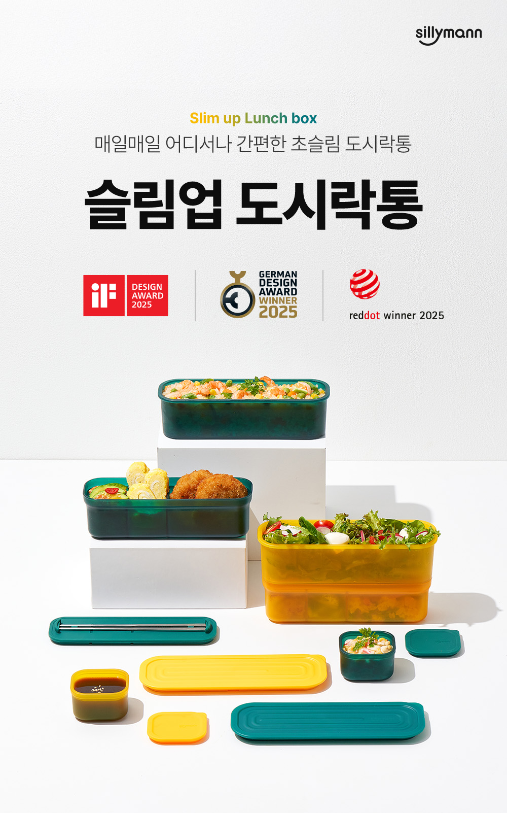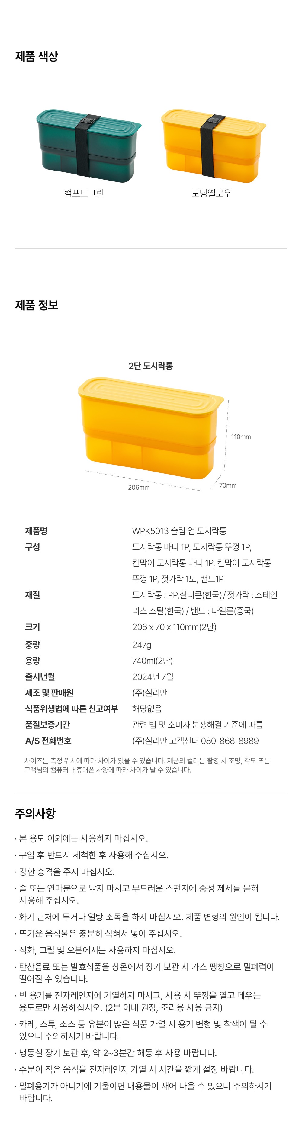 실리만 슬림업 2단 도시락통 - 모닝옐로우 1 팩