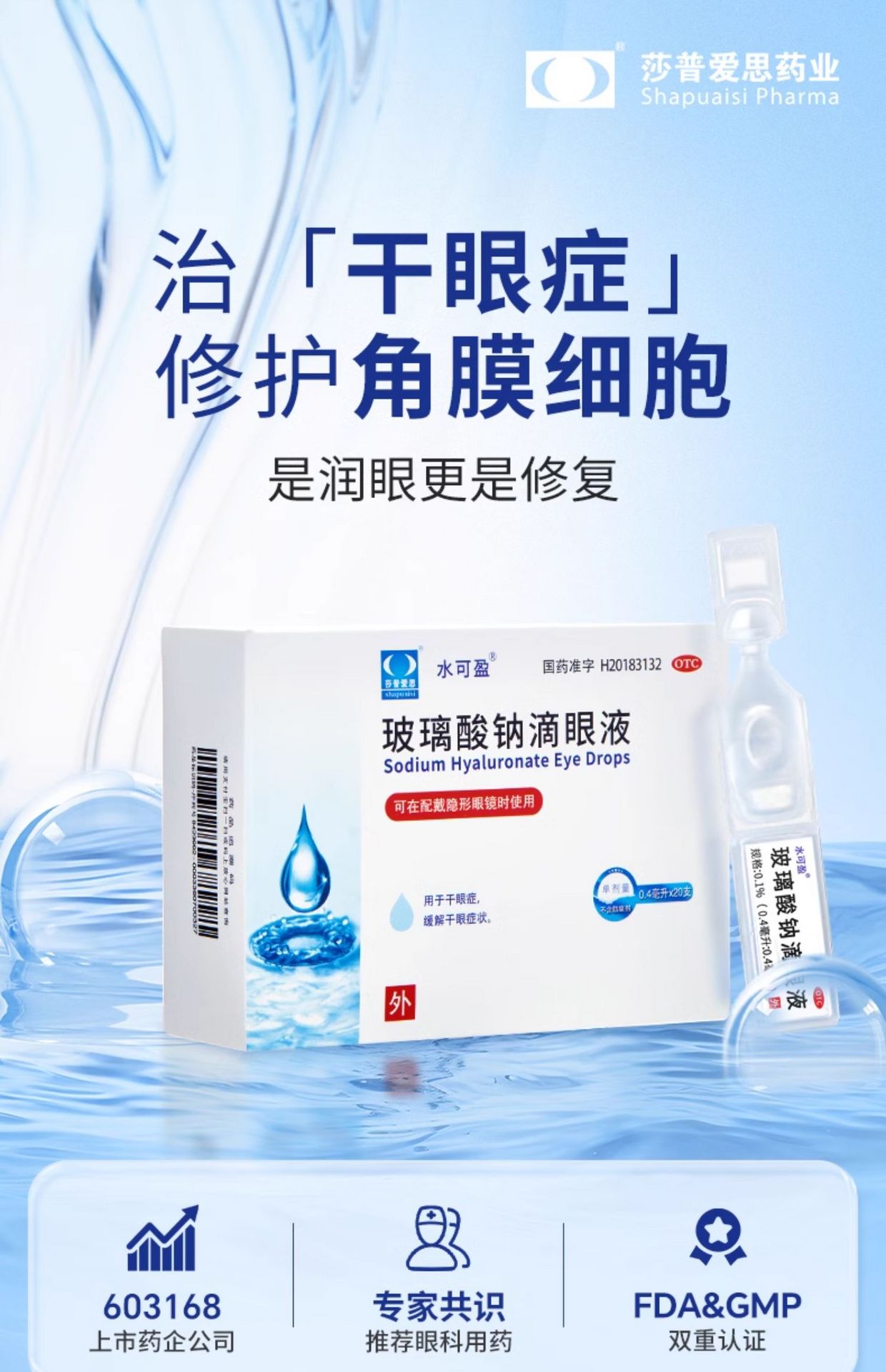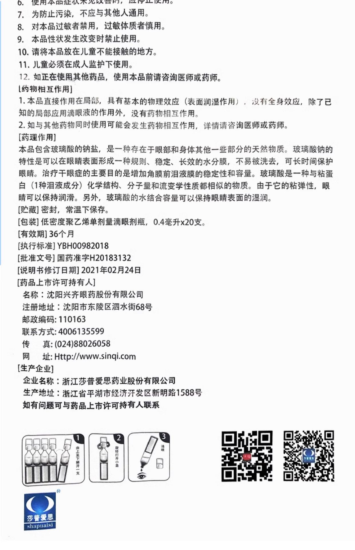 莎普愛思 玻璃酸鈉滴眼液人工淚液眼藥水緩解視疲勞模糊乾澀乾眼症 0.4ml*20支 80 毫升