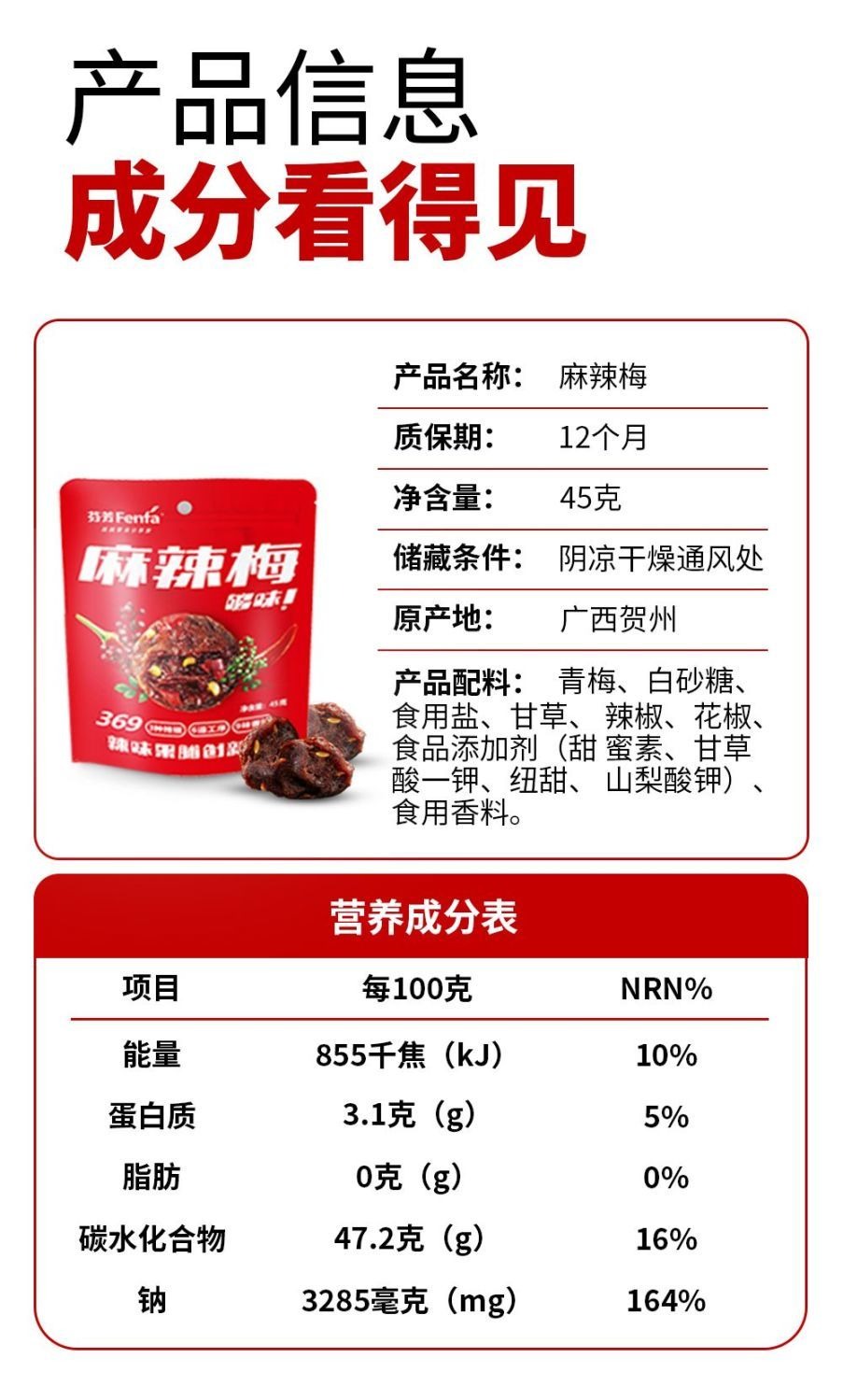 麻辣話梅 45 克