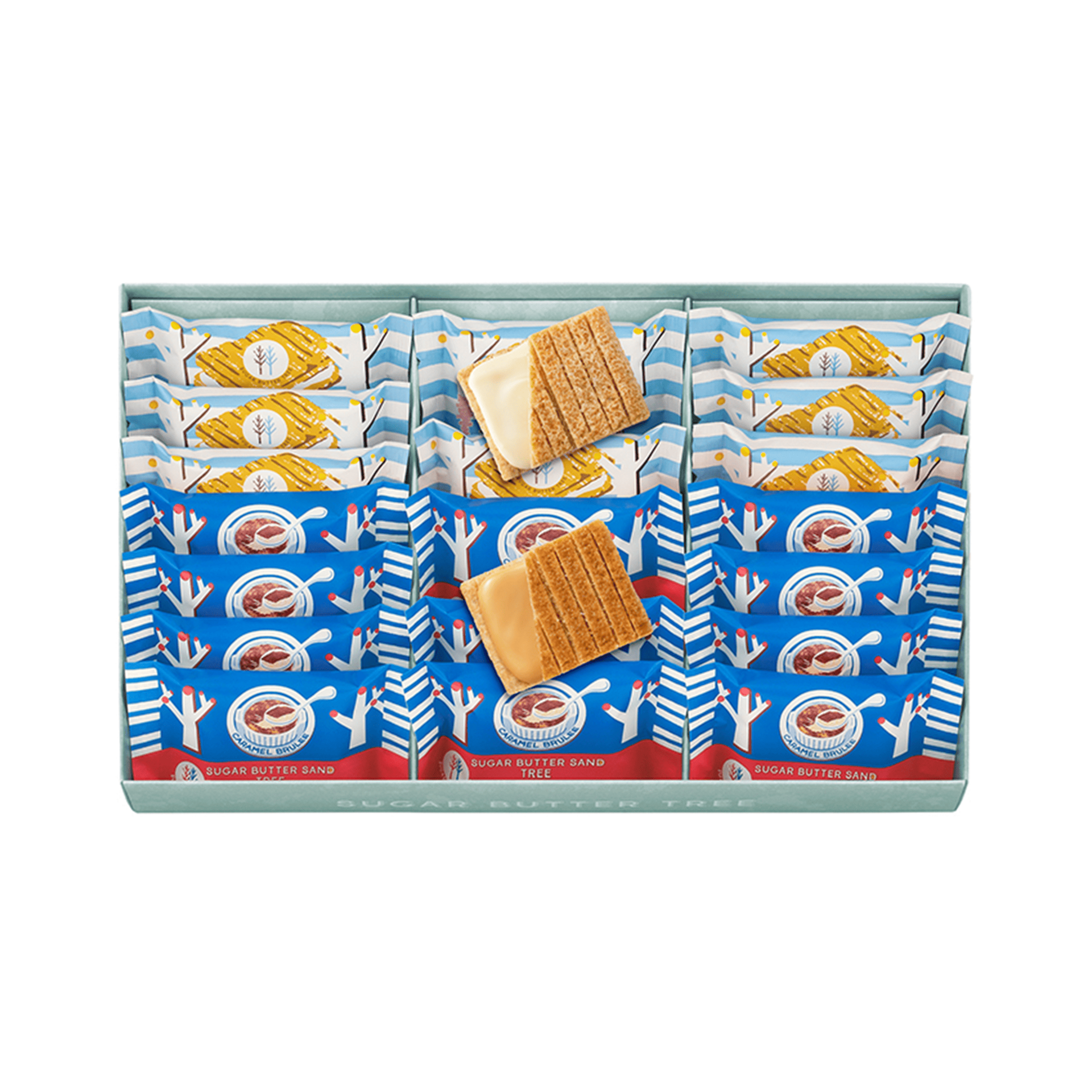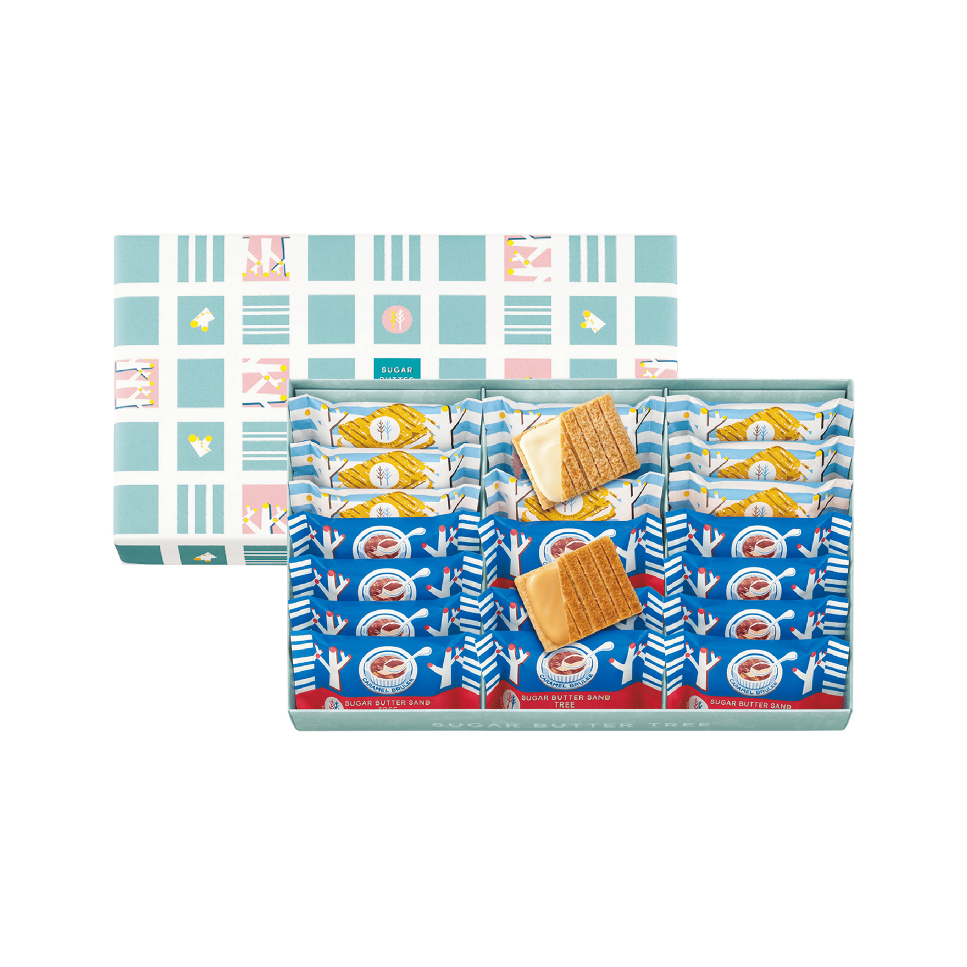 シュガーバターサンドの木 9個,シュガーバターサンドの木 キャラメルブリュレ 12個。