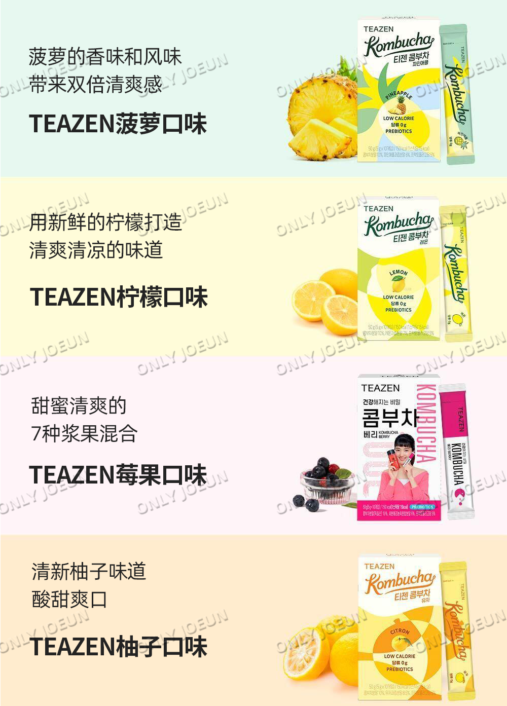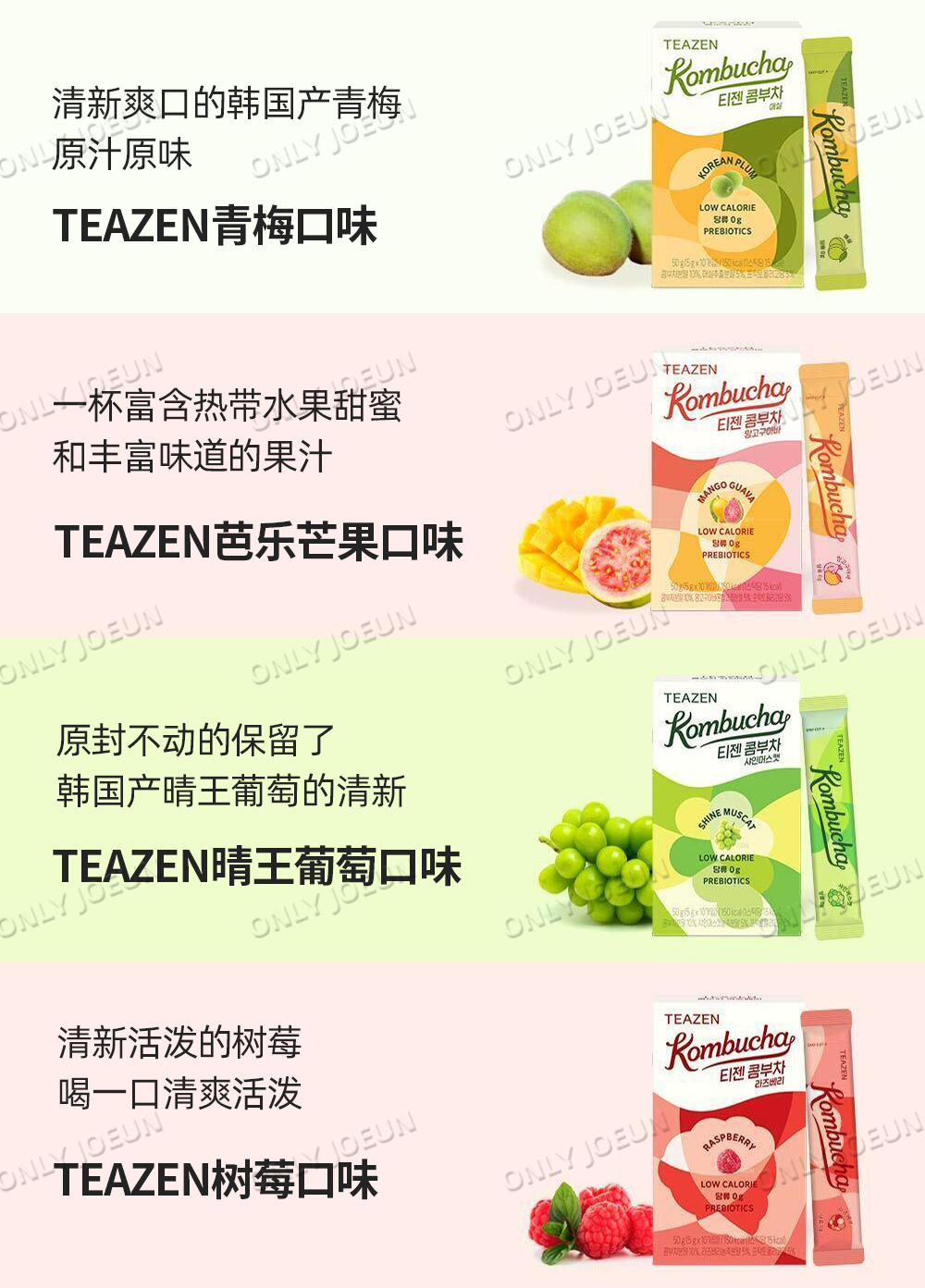 TEAZEN Kombucha Raspberry 0 Sugar LowCal 3 boxes 3 กล่อง