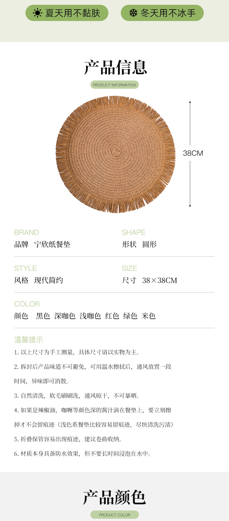 餐墊桌面裝飾紙 38cm 淺咖色 1個 1 份