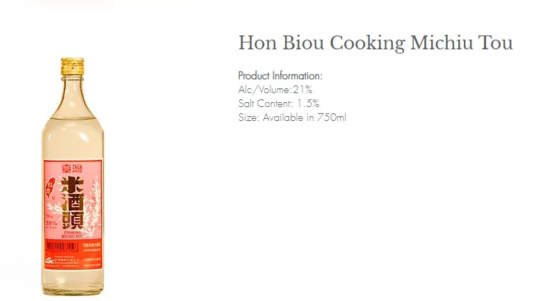 เหล้าหมักข้าวสำหรับปรุงอาหารไต้หวัน