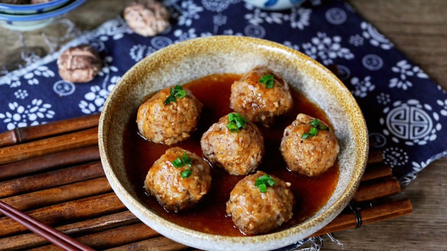 豬肉丸子是在以醬油為基礎的液體中燉製的