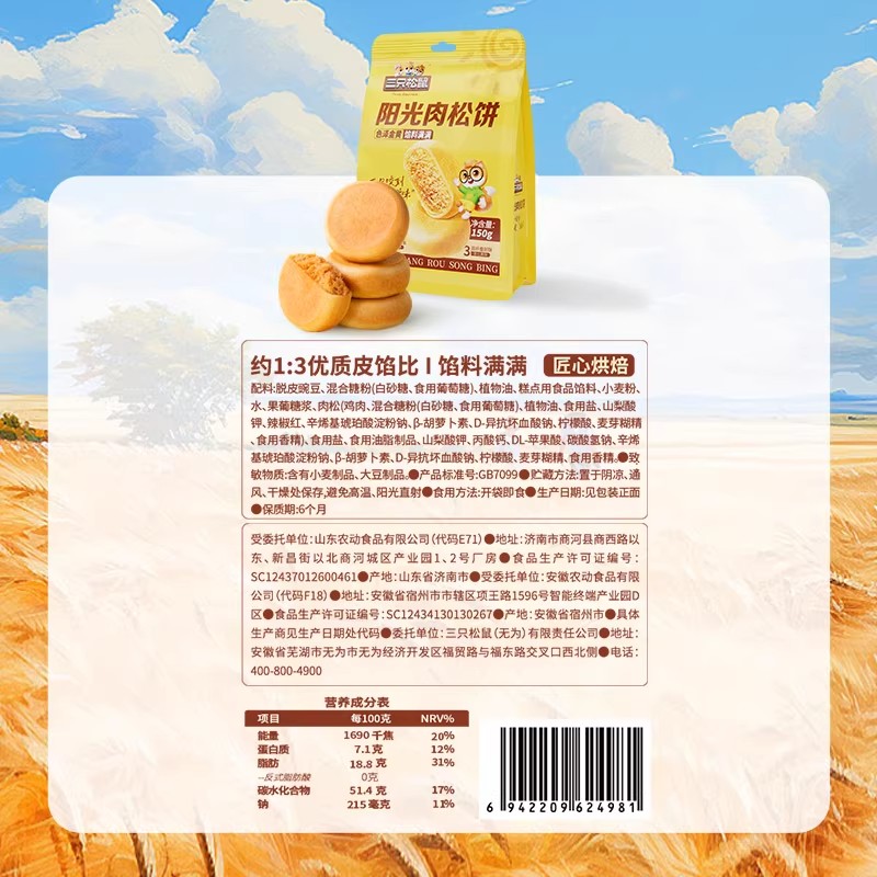 三隻松鼠肉鬆餅150g零食品糕點心