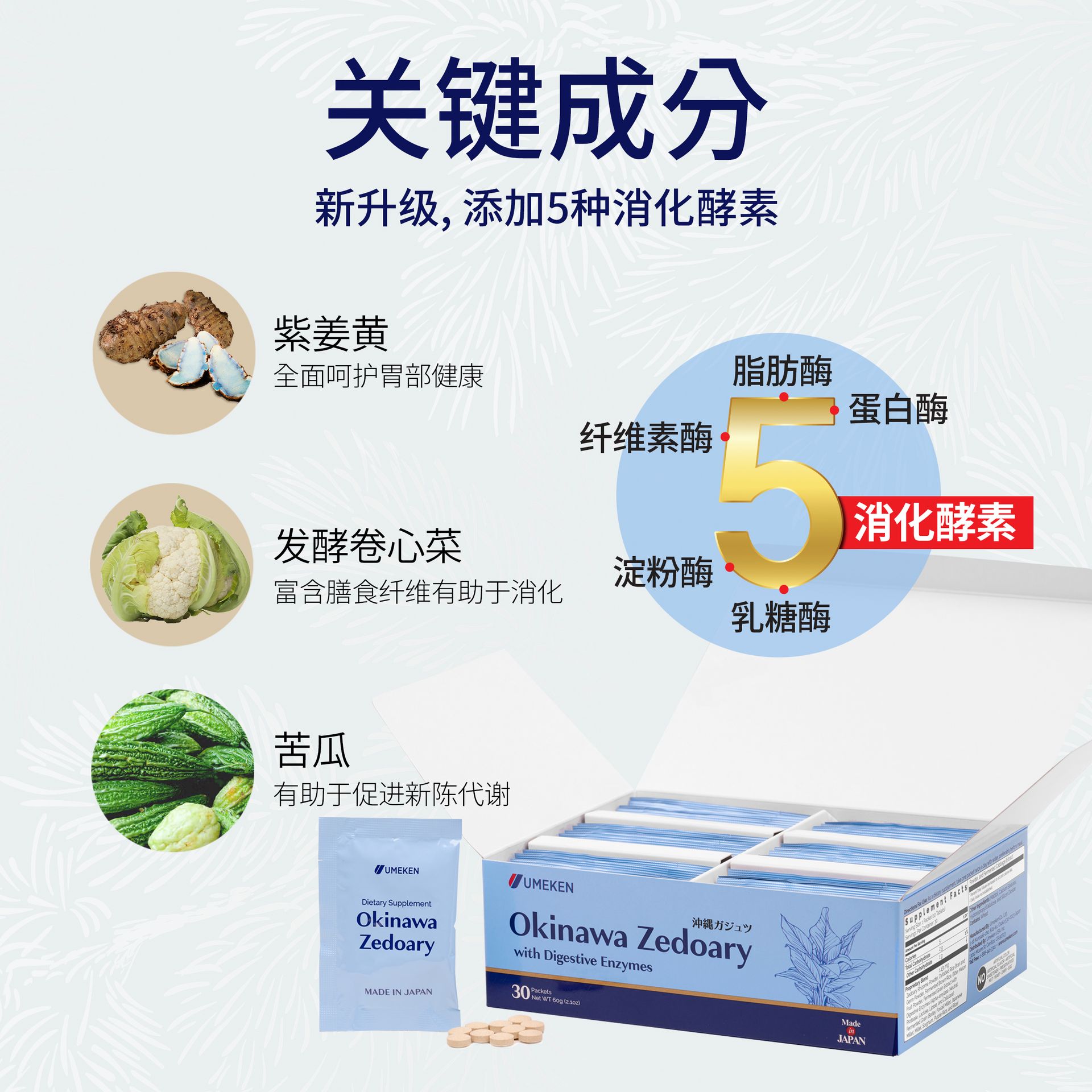 Combines the stomach-soothing power of zedoary with five digestive enzymes for comprehensive digestive support.