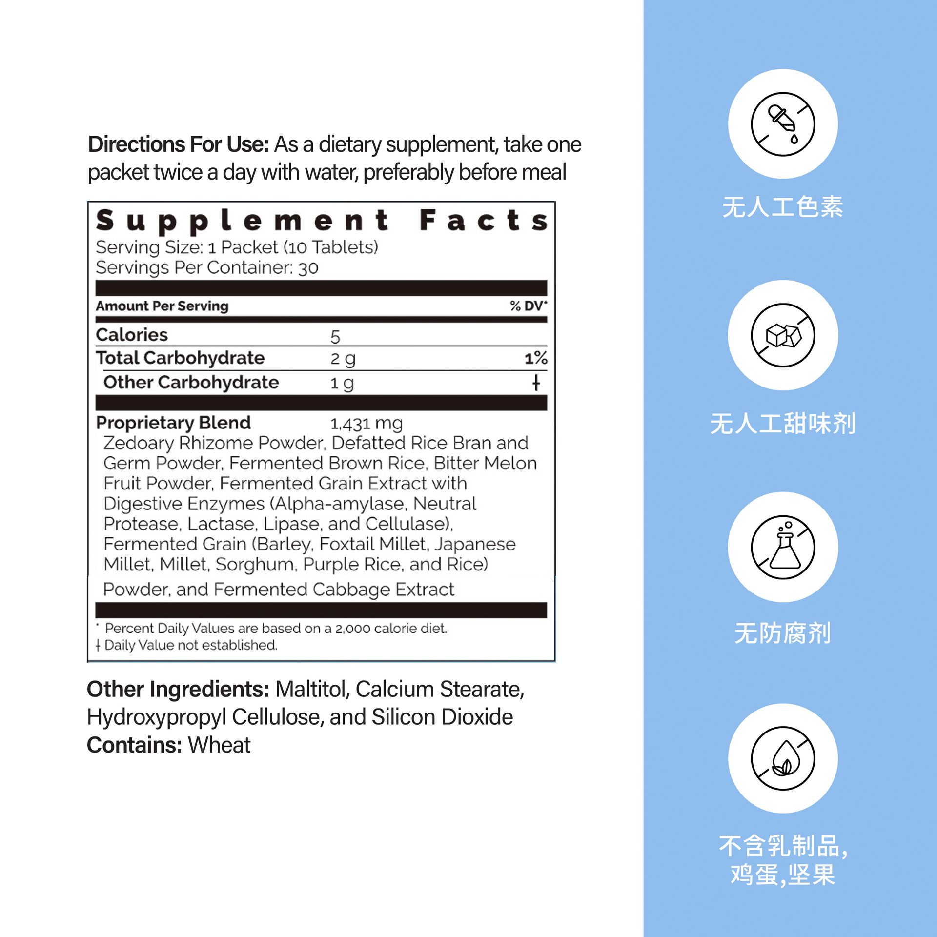Contains Zedoary, Fermented Cabbage, Bitter Melon and 5 essential digestive enzymes.