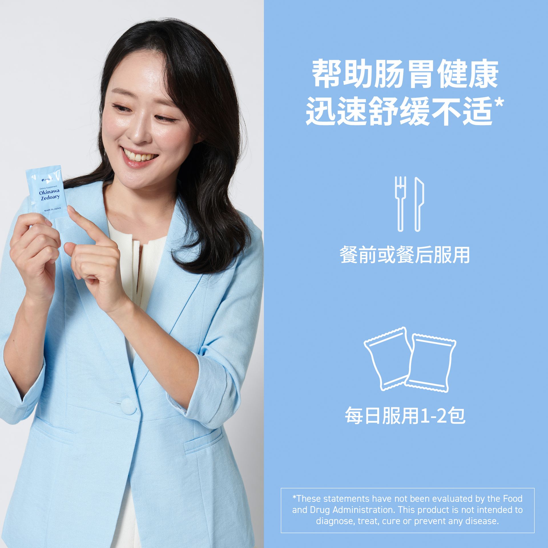 Okinawa Zedoary packets contain fast dissolving tablets made from high-quality ingredients that’s good for stomach health. It is recommended for people who consume fatty food, have acid reflux, and have excessive gastric acid.