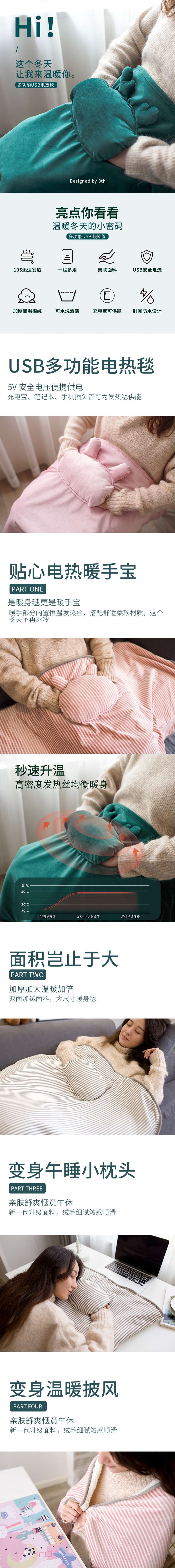 USB Blanket 72x115cm 1 ส่วน