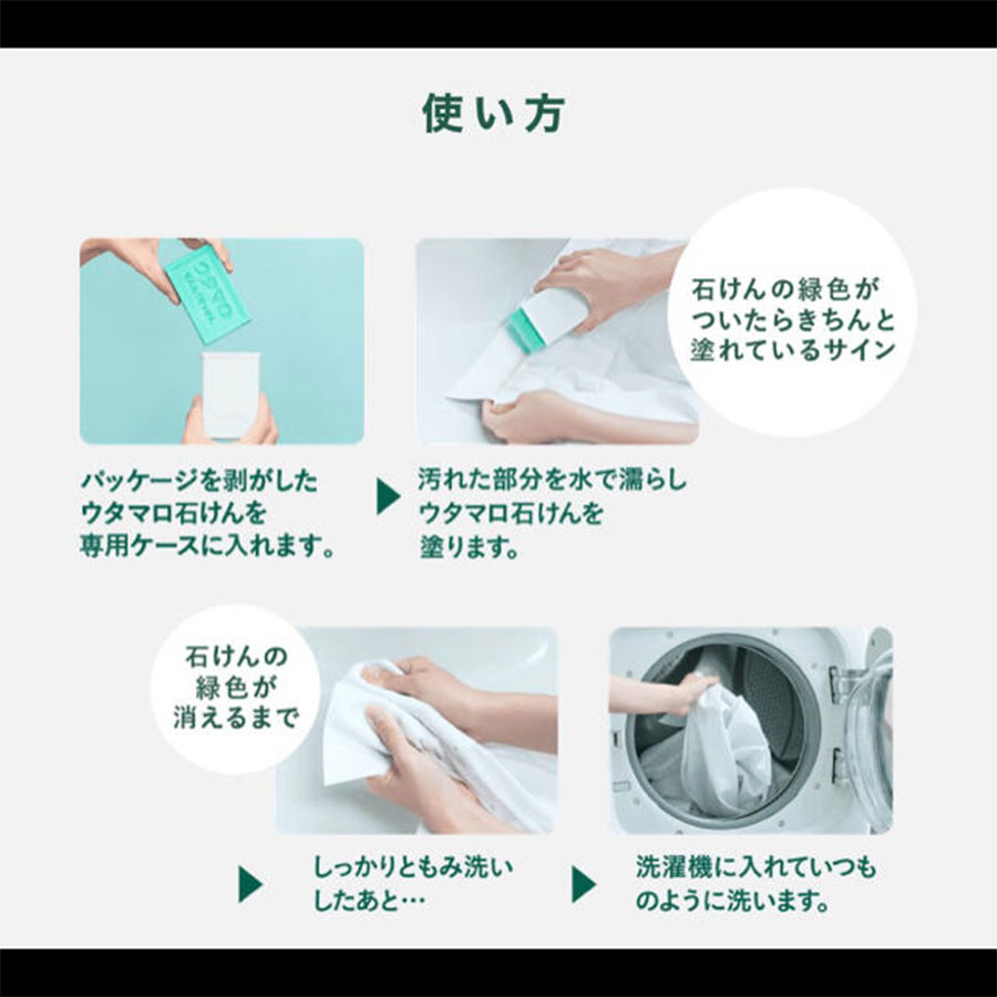 ・頑固な汚れも簡単キレイに落とすウタマロ石けんに、専用ケースがついたセットです。 ・ケースに入れてご使用いただくと手が滑らず、汚れた部分へピンポイントに塗っていただけます。