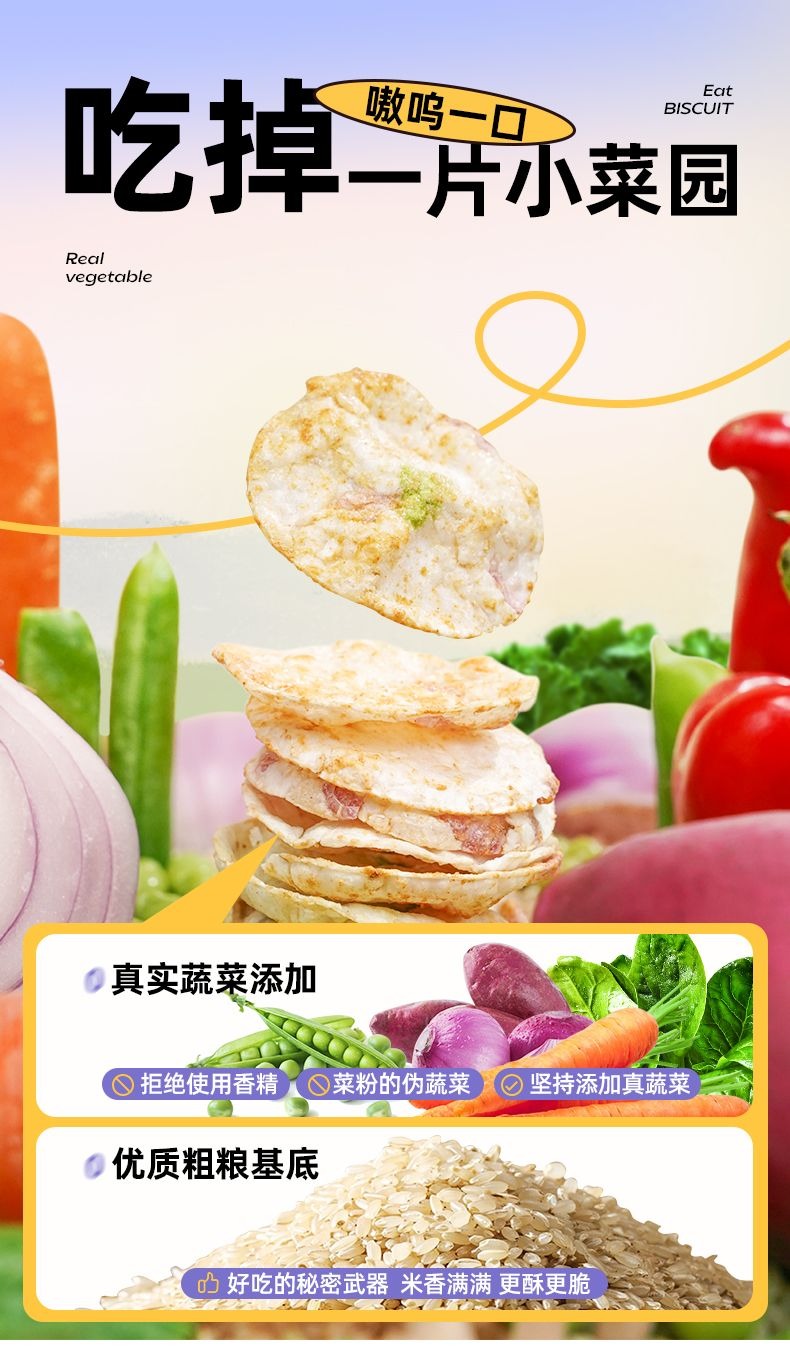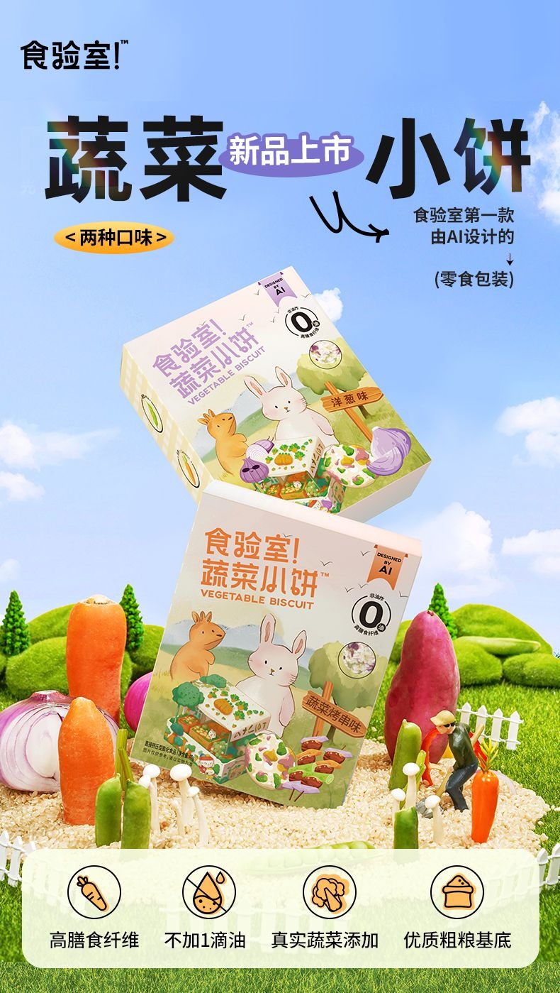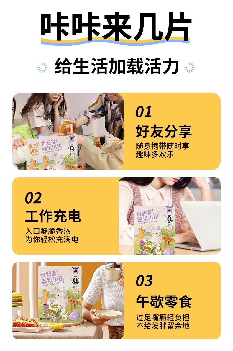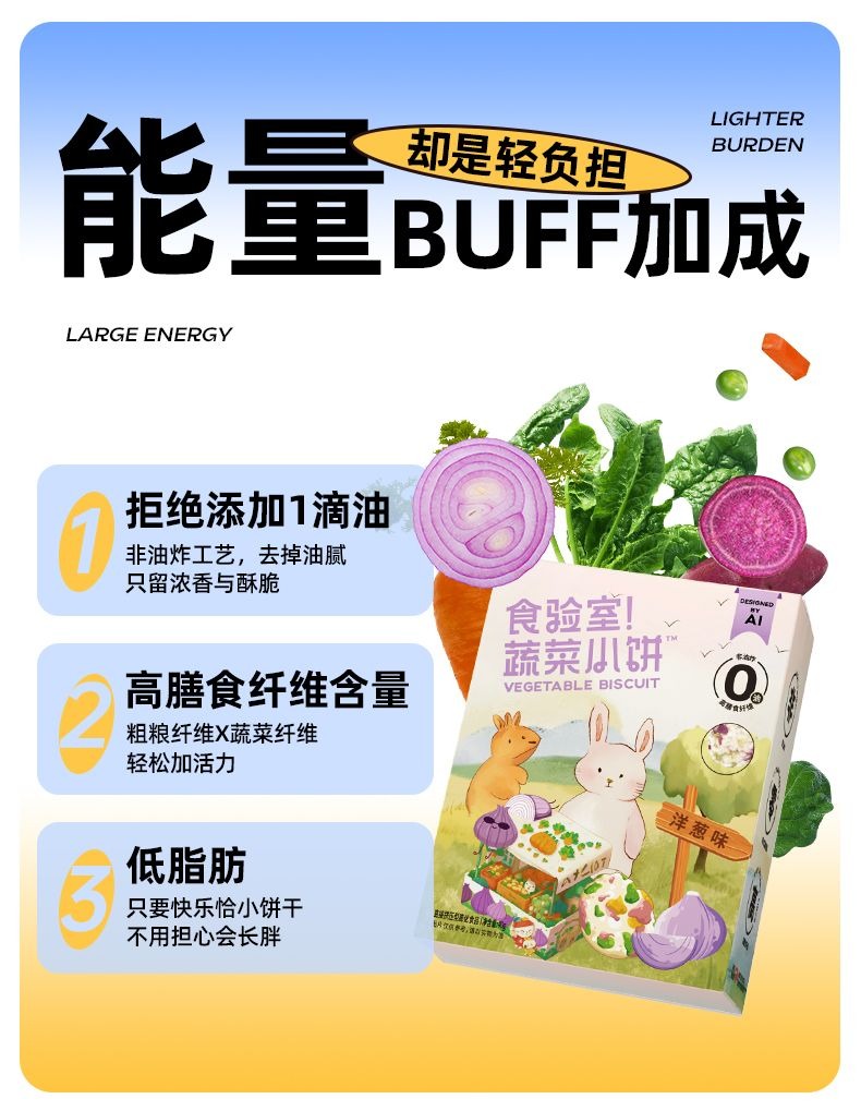 食验室蔬菜小饼低脂肪非油炸办公室休闲追剧宿舍解馋零食推荐(蔬菜烤串味 40g/盒, 3盒装) 120 克