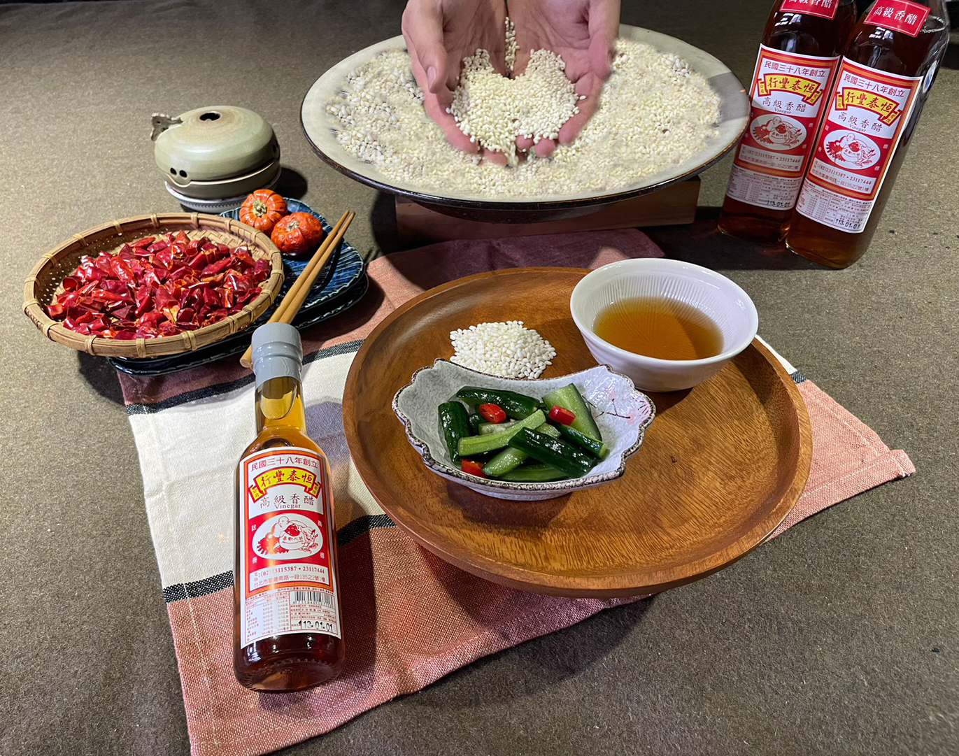 恆泰豐的香醋採用與江浙地區生產工藝相同的工法,與江浙當地不同的是當地以大米、麥子為主,而因臺灣農產品以糯米為大宗,故以糯米為原料。本產品富有層次的酸度和內質,在酸和香中有相當巧妙完美的平衡。由於我們的醋屬調理食醋,無論是用來沾餃子、拌麵或是醃漬食品都是最佳的選擇。