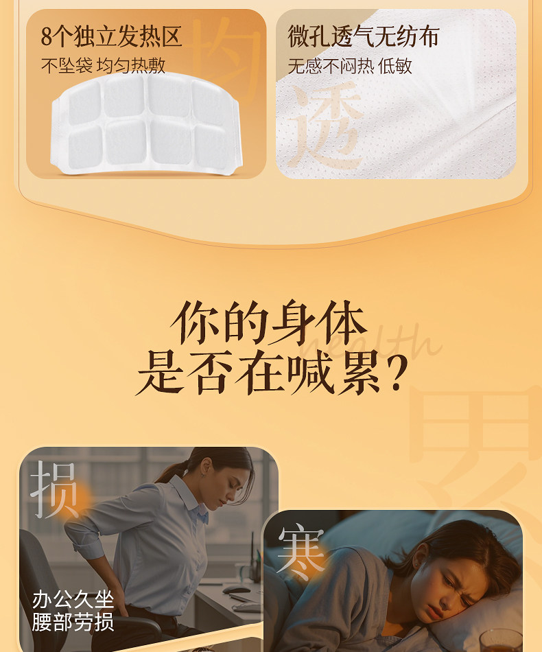 Waist warming patch, 6-pack, for lower back heat 1 each