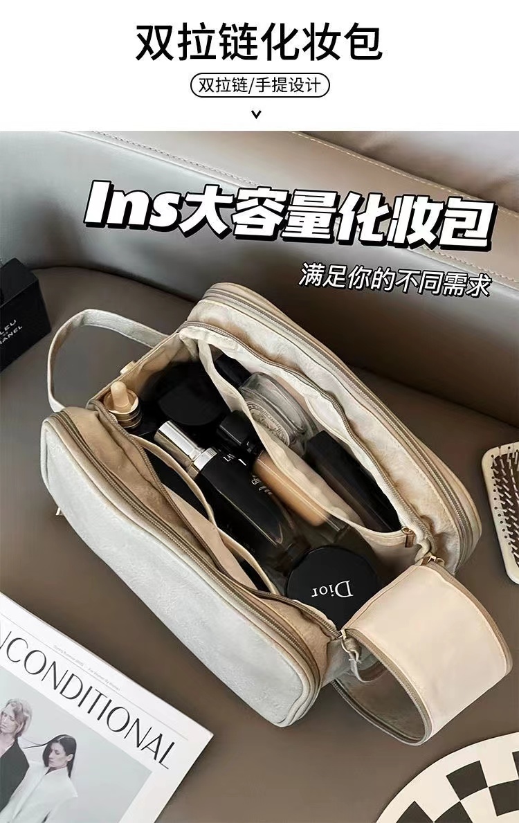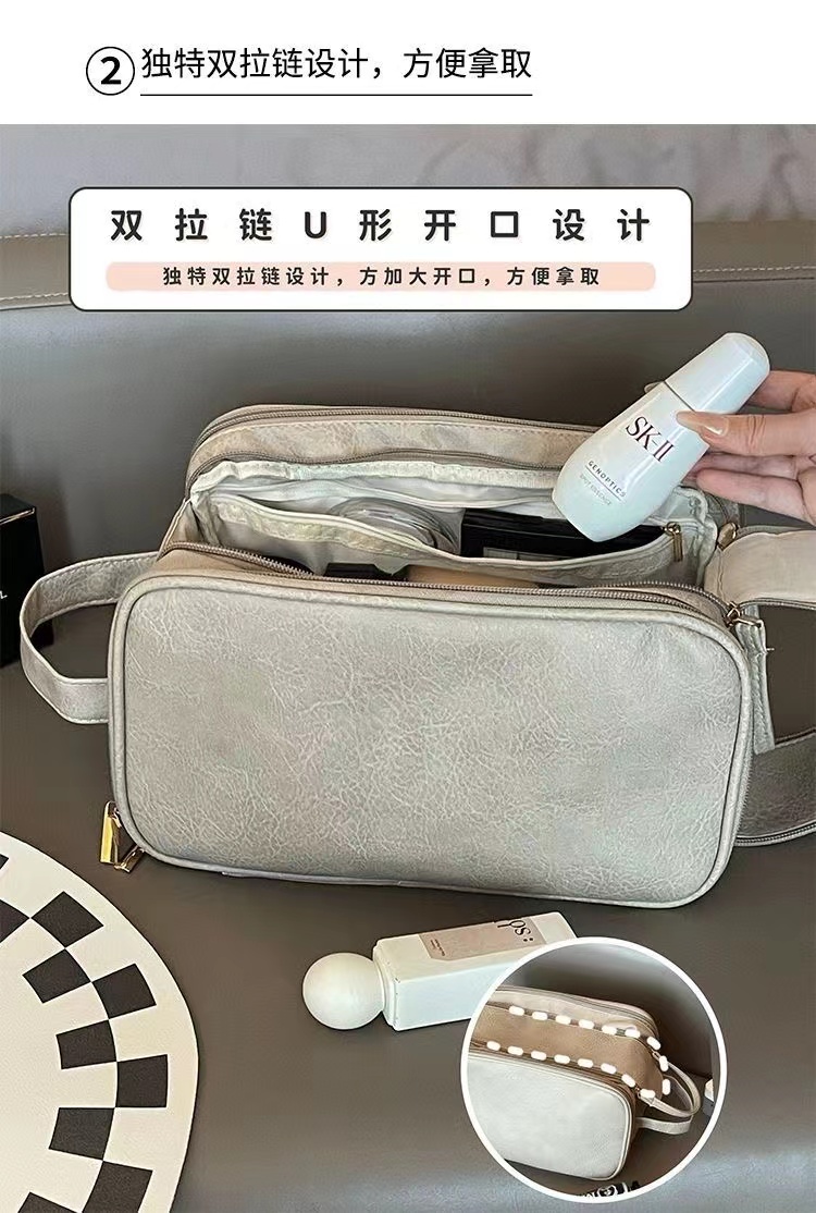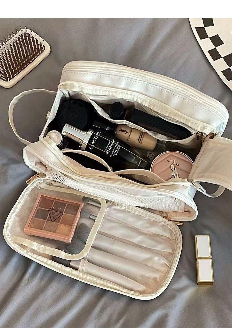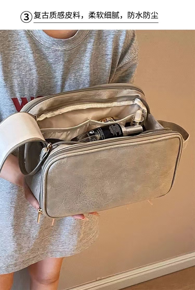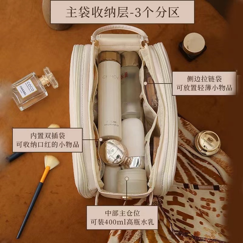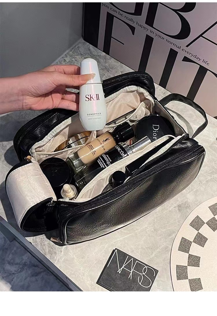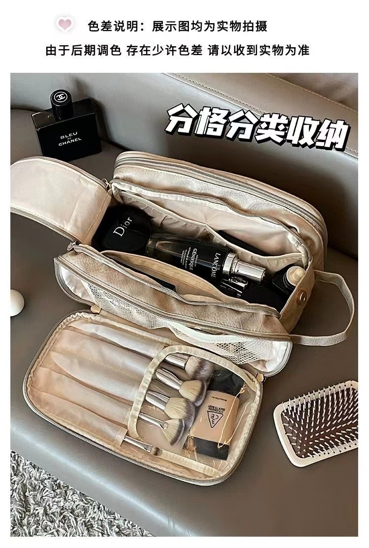 ins/小紅書超火的【粉色漆麪皮】大容量乾溼分離化妝包 便攜旅行外出隨身化妝收納包洗漱包可放化妝刷多個分區防水卸妝巾 1 个